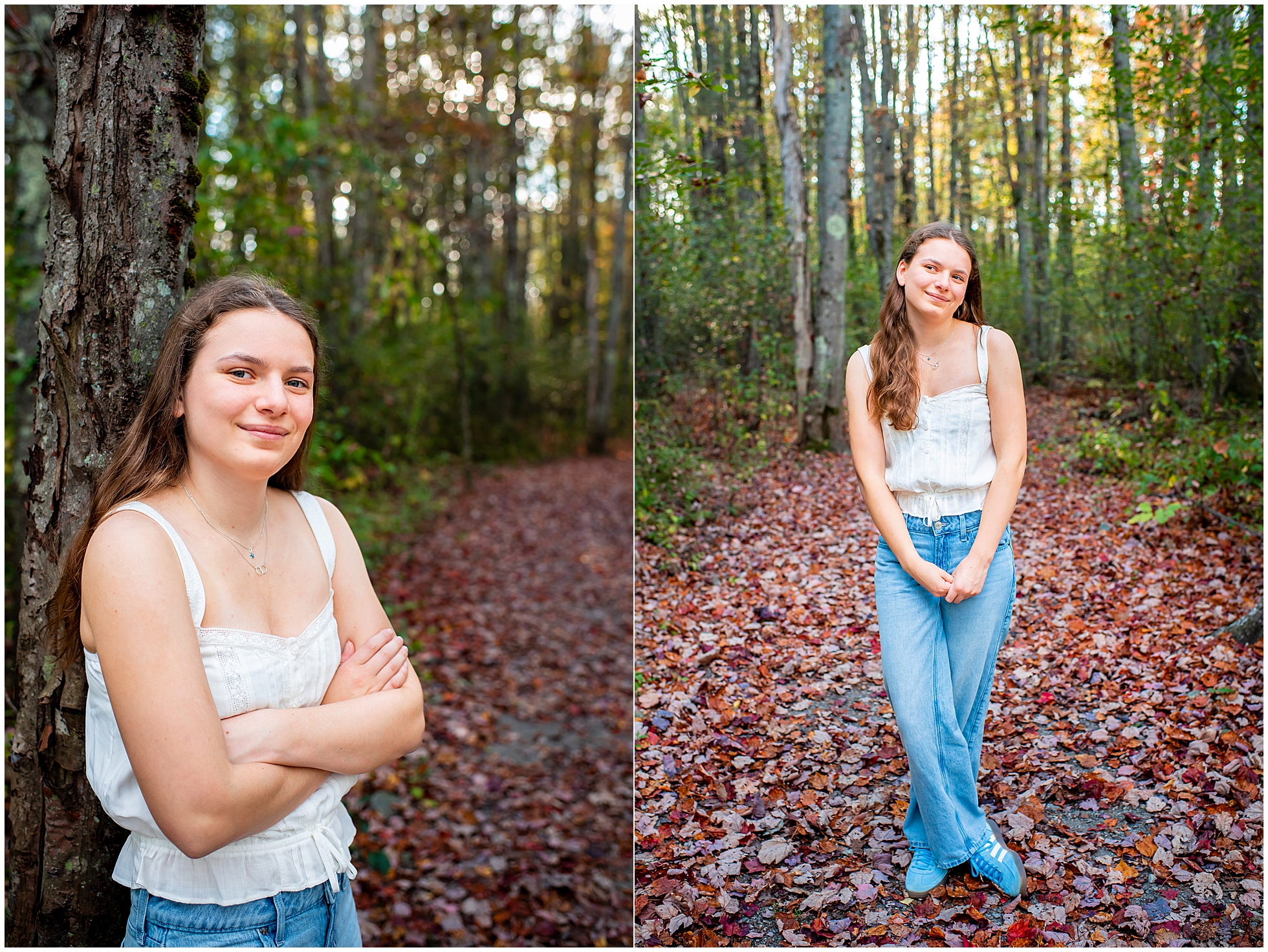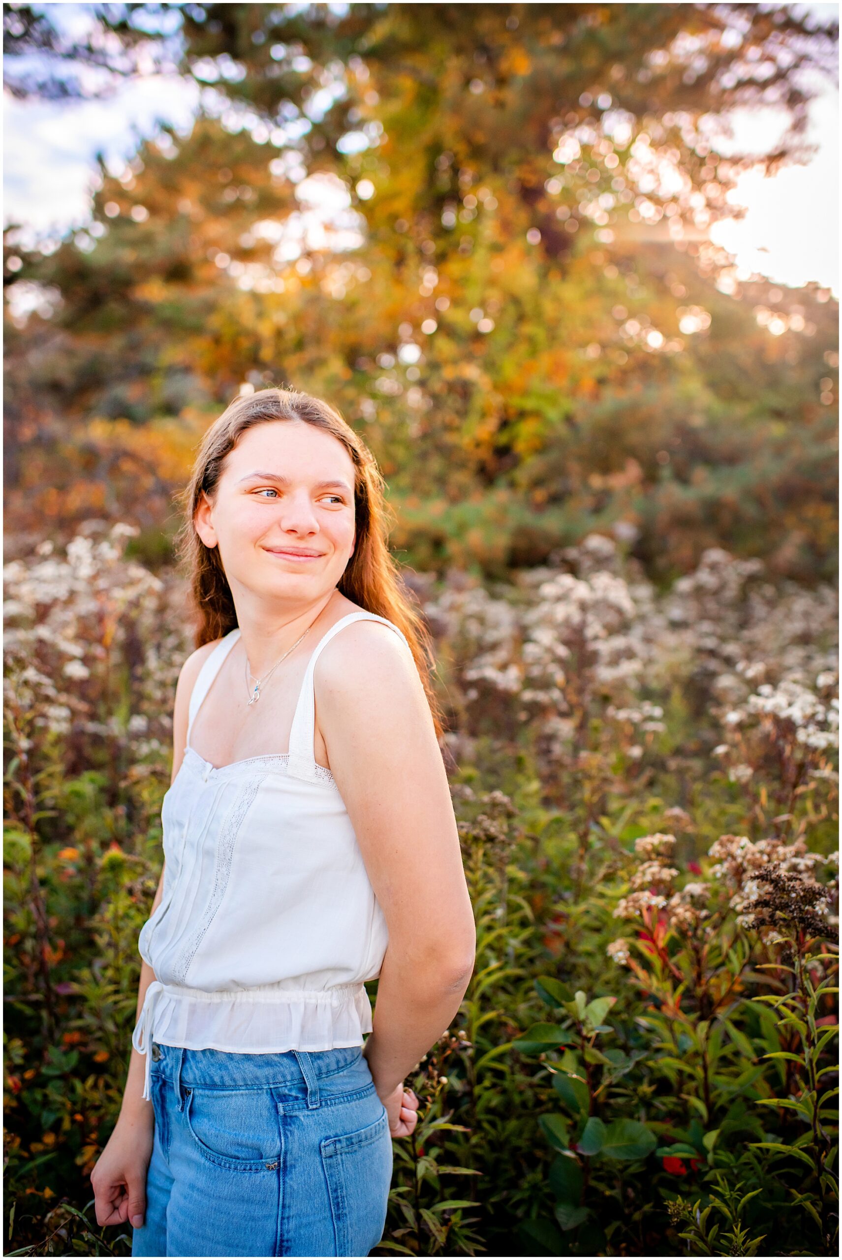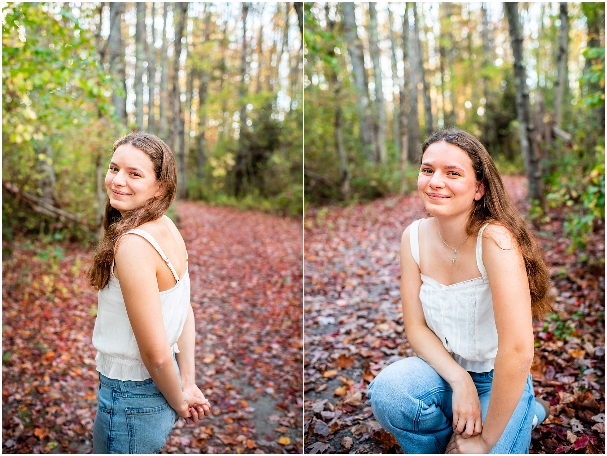 I’m so thrilled to be sharing Mira’s senior photos today! Mira is a member of Freeport High School’s Class of 2026, and we met up here in Yarmouth in early October for her senior photos. I have a special place in my heart for theater kids, having one at home myself, so when I found out Mira is Freeport’s stage manager for their theater program, I instantly knew I would like her – and I was so right.