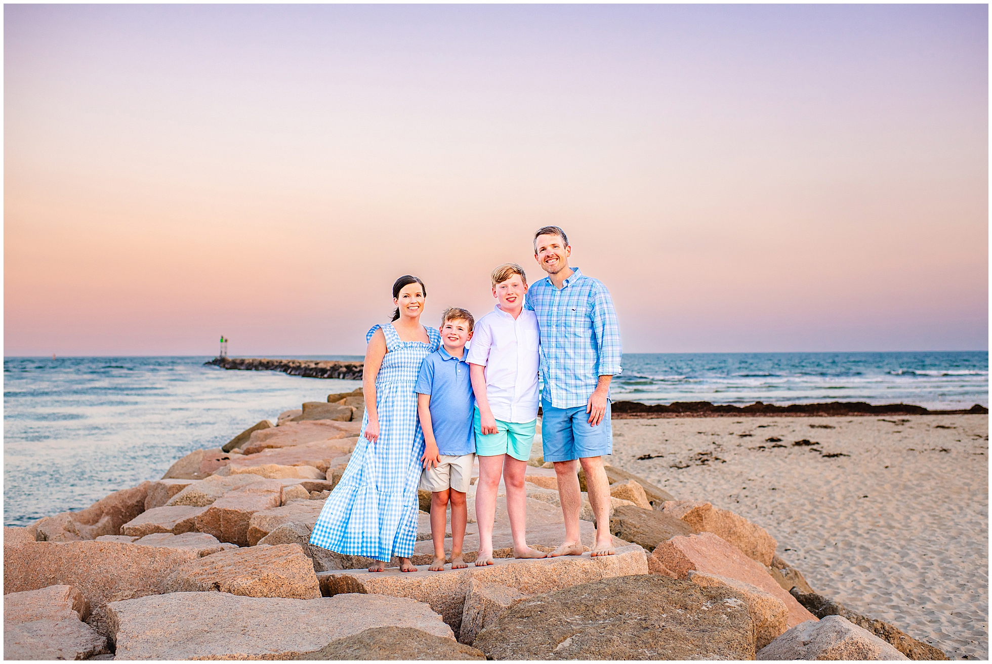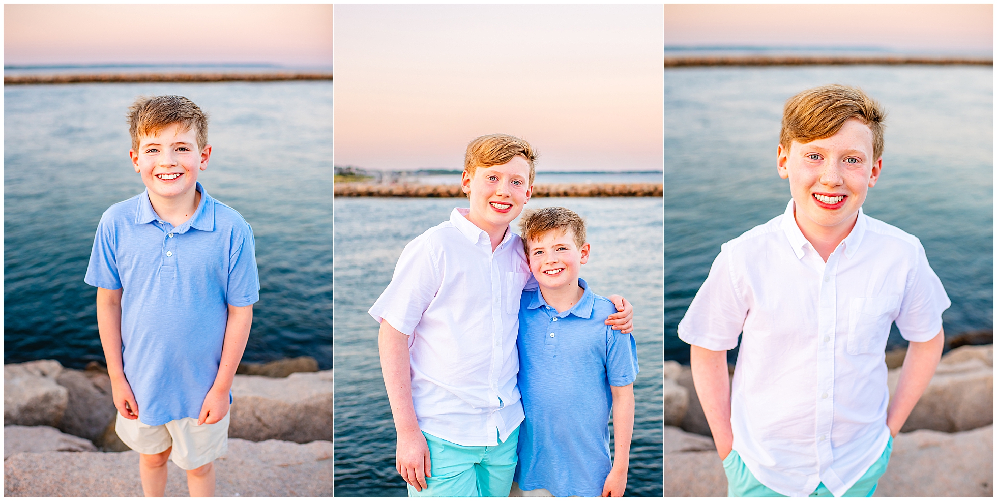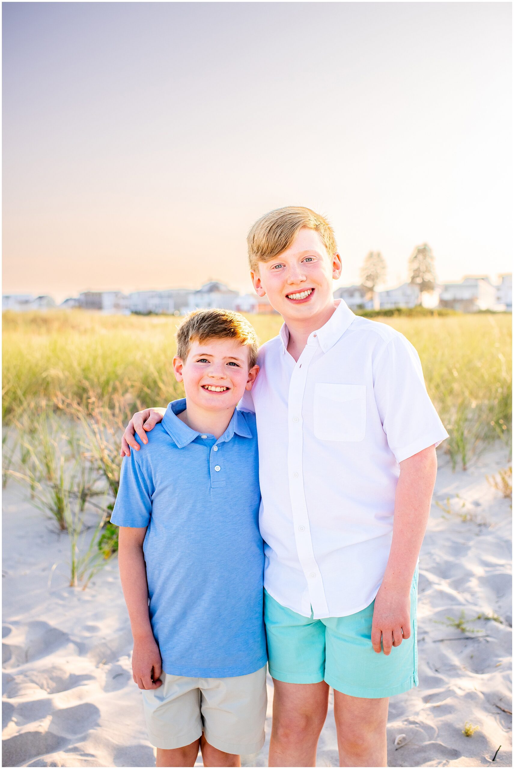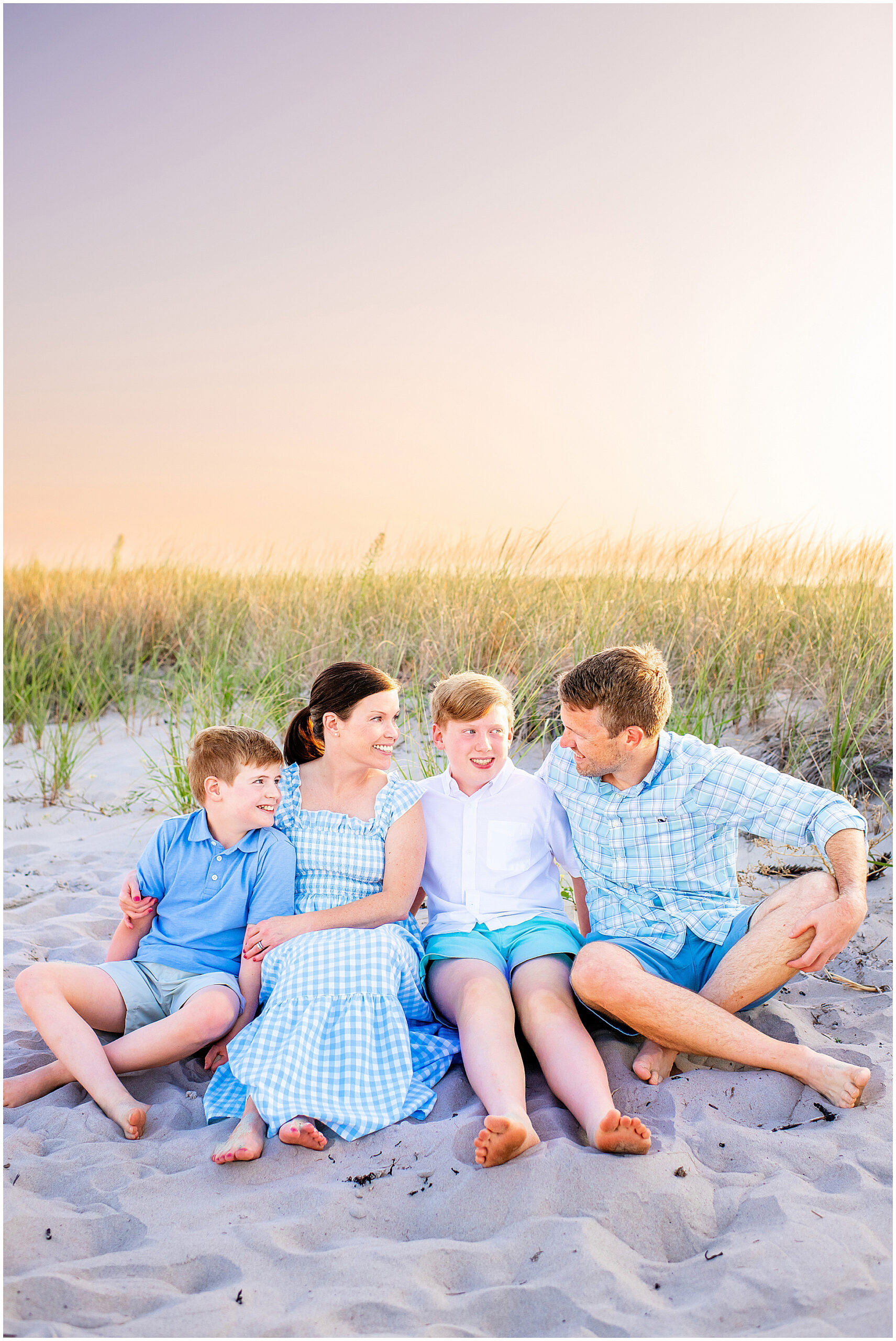 This morning we start with the A Family – Kristin, Matt, Chase, and Davis, who I have had the pleasure of getting to know over the past eight years. I’m always so honored that these four take an evening every year to travel to southern Maine from New Hampshire for our session, and I’ve loved watching Chase and Davis grow up – it’s hard to believe they were so tiny when we first met. This year we went to Wells Beach on a sunny August evening with pastel skies, gorgeous dunes, and blue water. At 14 and 10, the boys are definitely coming into their own, both so smart and involved in sports and school. They still have their silly sides though, and while it may take a little more nudging these days to get them to play for the camera, it’s totally still do-able, especially when enticed by a friendly racing competition. It’s always a pleasure to spend an evening with these four and I loved our sunny summer session this year.
