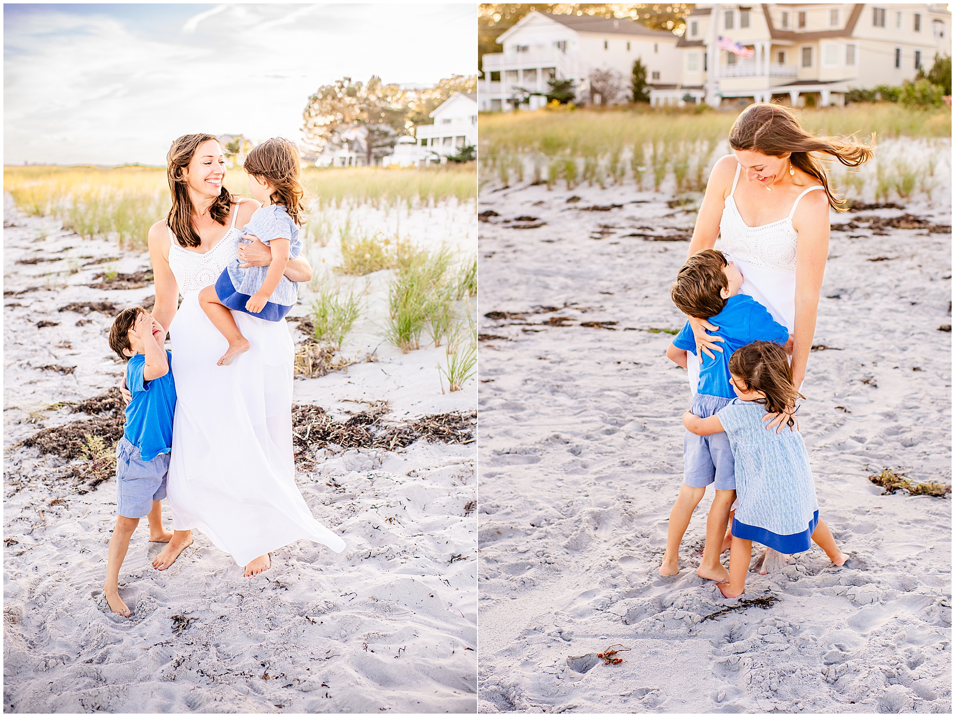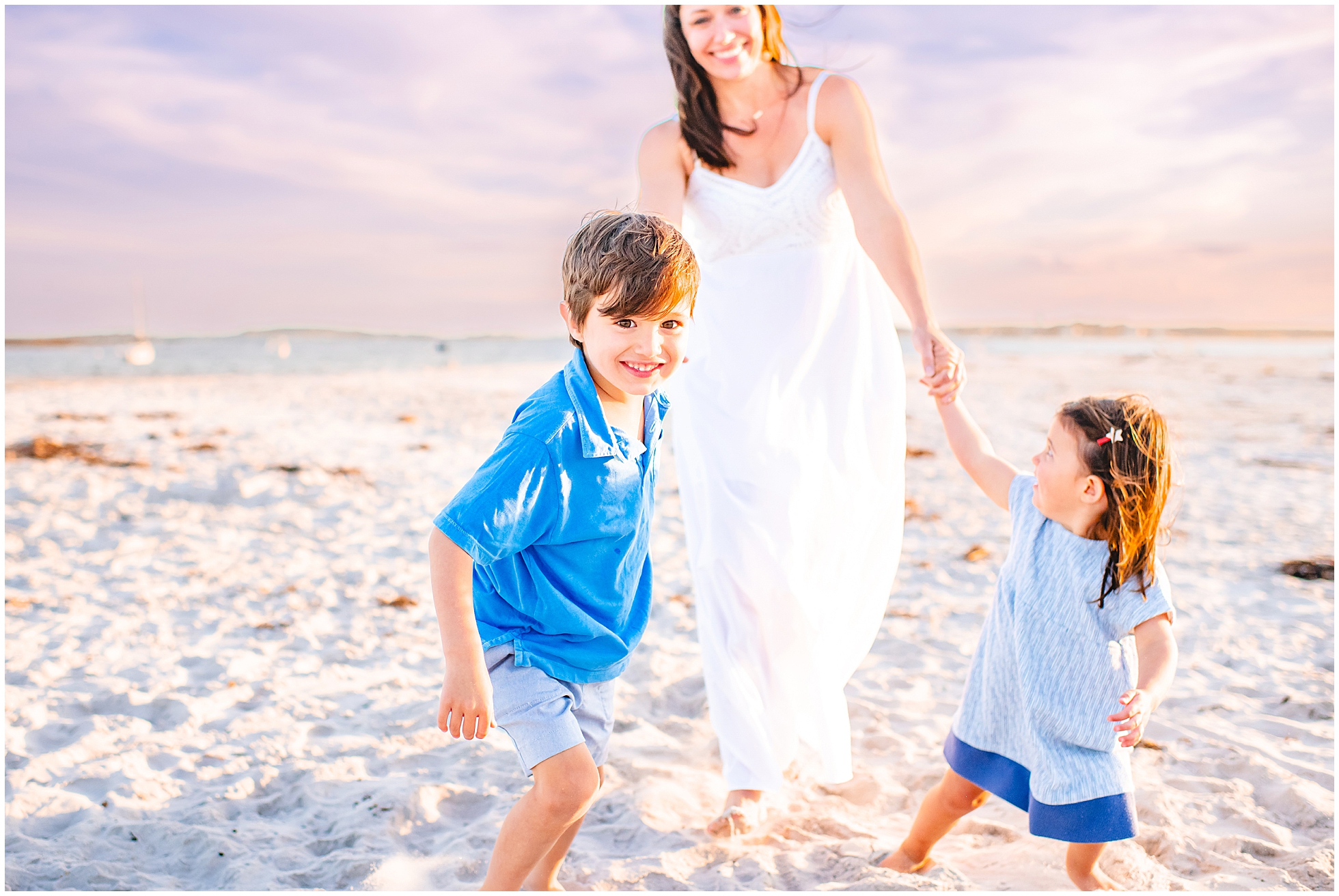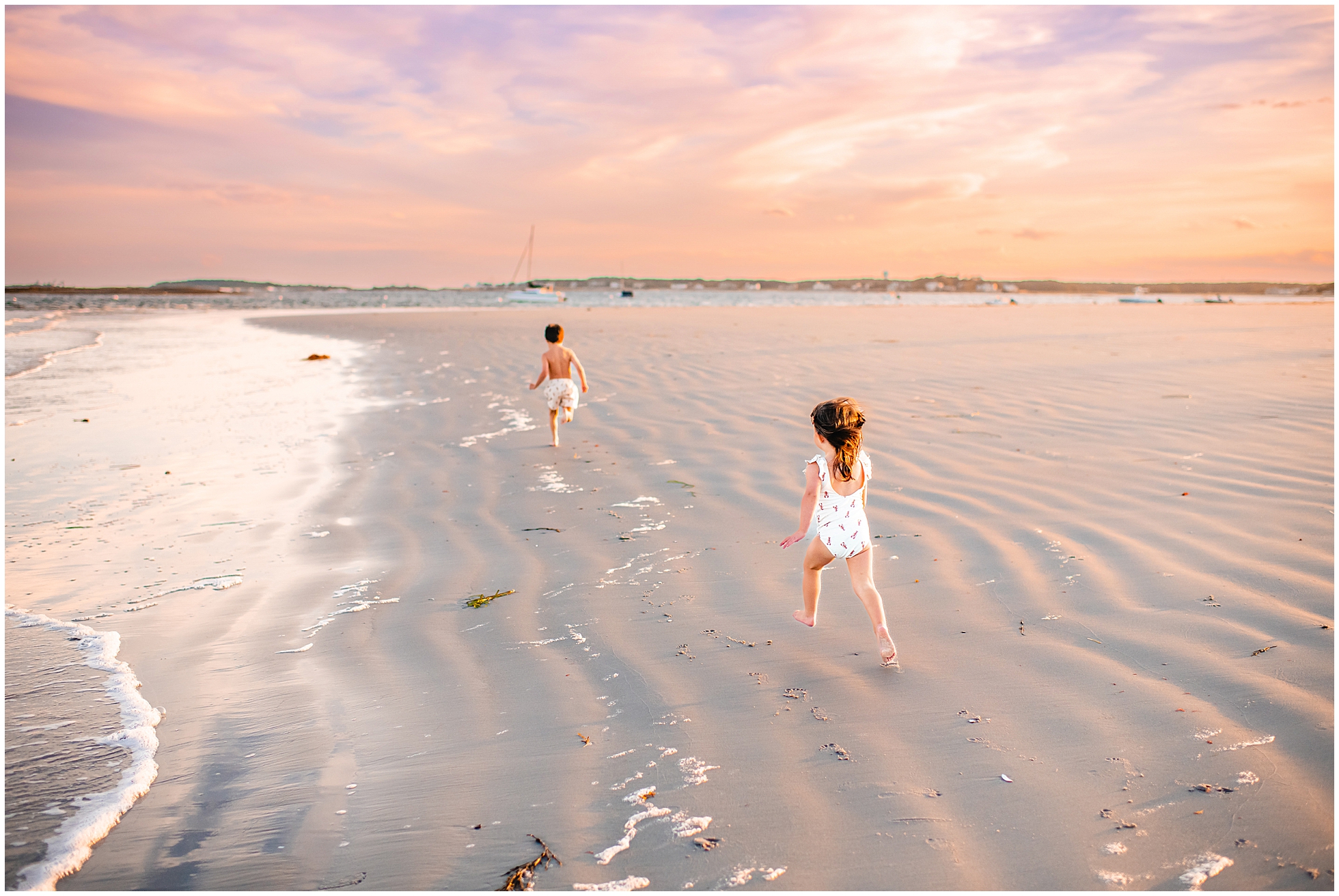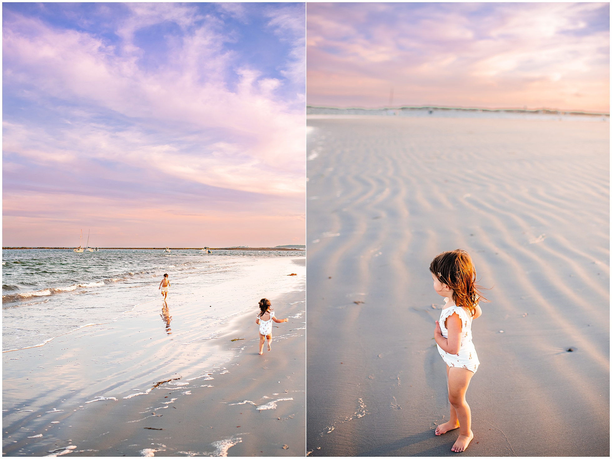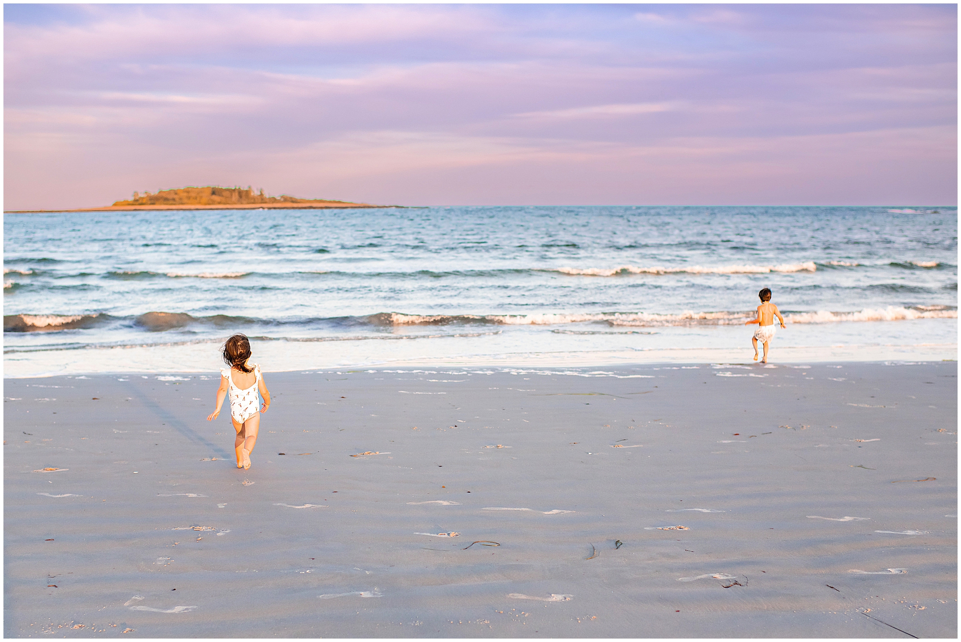 Back in 2020, I first met Caitlin and Mic at Reid State Park for their maternity photos. Since then I’ve had the pleasure of taking their photos several times, including Hugo’s newborn photos later that year, and Mila’s in 2023, with some fun family photos sprinkled in between as well. This summer Cait wanted super playful photos on the beach, and so we headed to Goose Rocks Beach in Kennebunkport for a night of photos in late August. Unfortunately Mic could not join us this year, and so we had an evening full of fun with mom. We started with some playfully posed photos, and then the kids changed into the cutest lobster bathing suits for some extended play time, with lots of running, splashing, and playing. We had a bright and beautiful Goose Rocks evening, a perfect backdrop for the sunny and fun personalities of these three awesome humans. Here are my favorites!