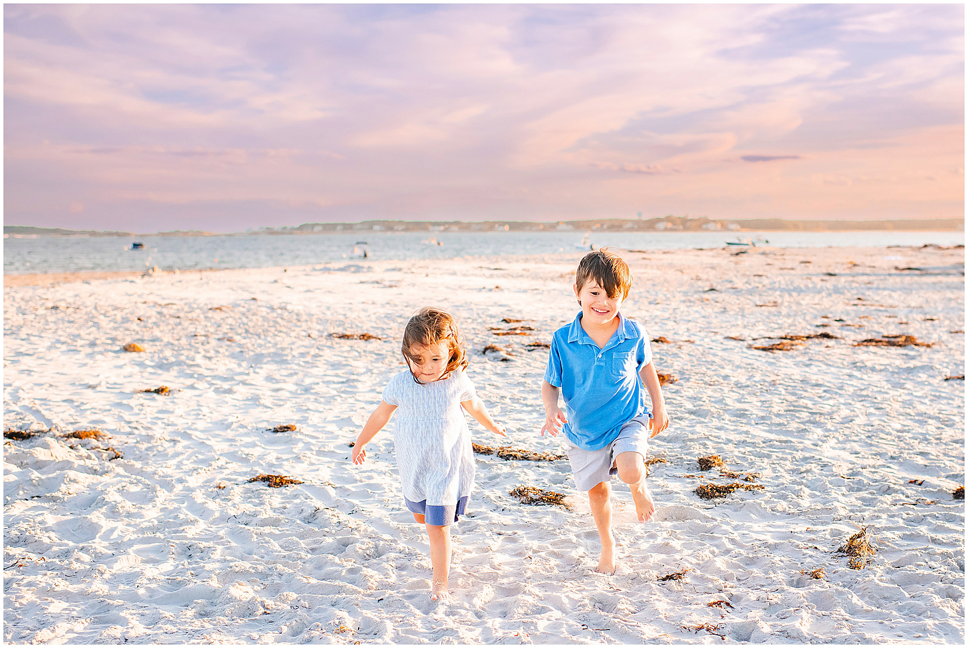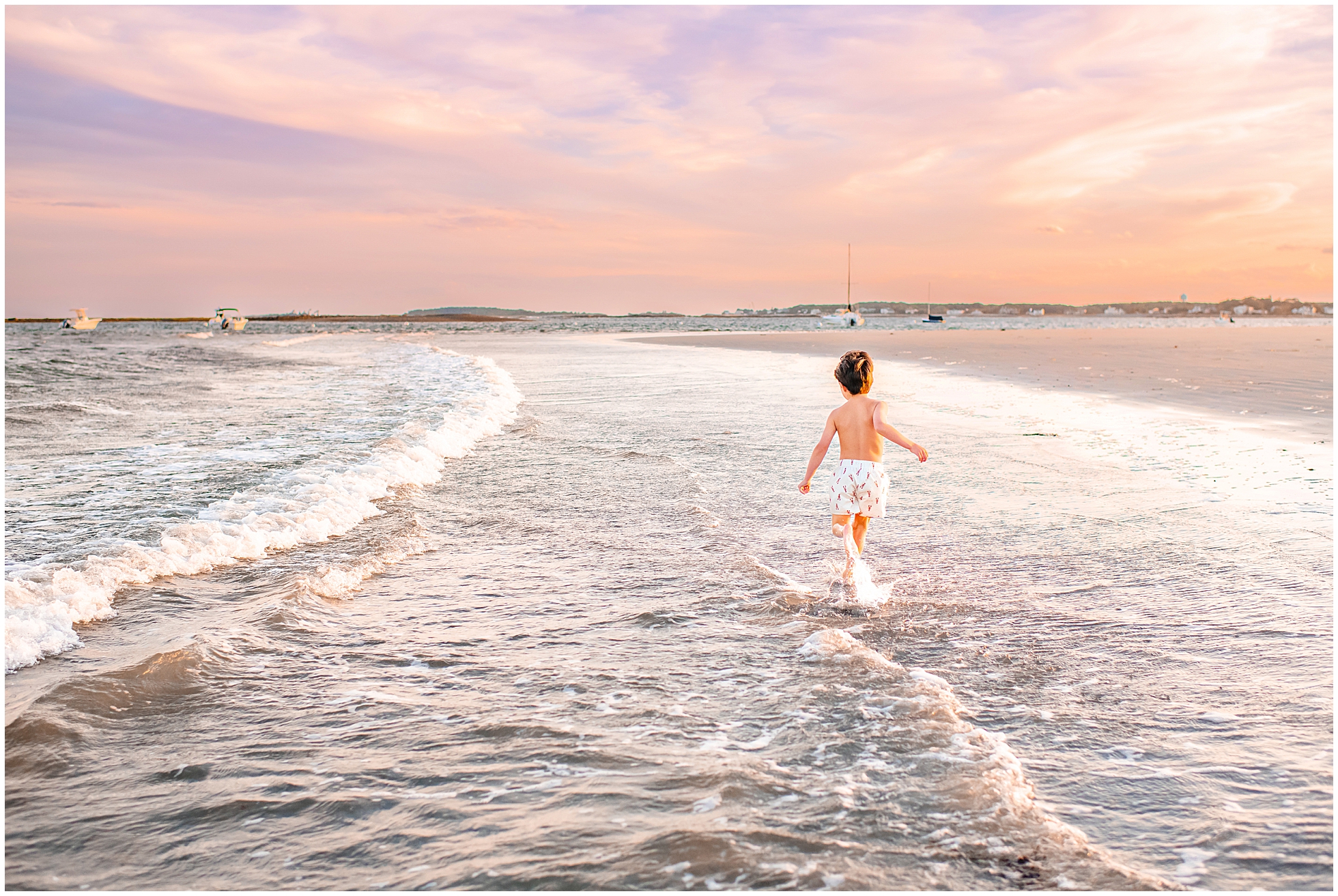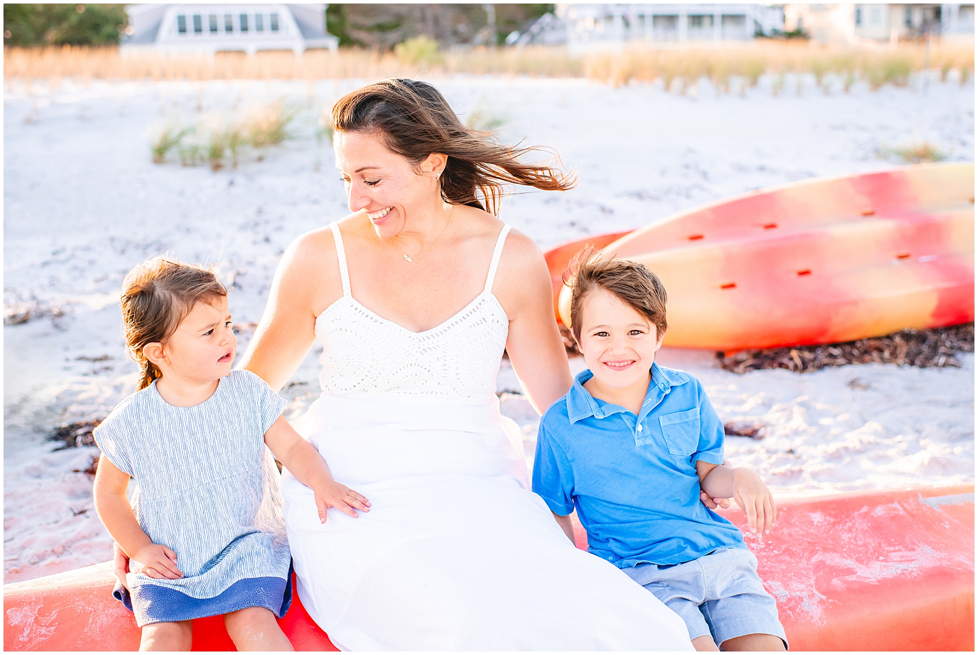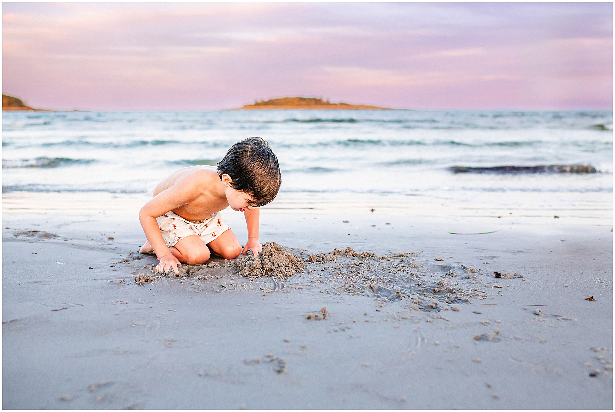 Back in 2020, I first met Caitlin and Mic at Reid State Park for their maternity photos. Since then I’ve had the pleasure of taking their photos several times, including Hugo’s newborn photos later that year, and Mila’s in 2023, with some fun family photos sprinkled in between as well. This summer Cait wanted super playful photos on the beach, and so we headed to Goose Rocks Beach in Kennebunkport for a night of photos in late August. Unfortunately Mic could not join us this year, and so we had an evening full of fun with mom. We started with some playfully posed photos, and then the kids changed into the cutest lobster bathing suits for some extended play time, with lots of running, splashing, and playing. We had a bright and beautiful Goose Rocks evening, a perfect backdrop for the sunny and fun personalities of these three awesome humans. Here are my favorites!