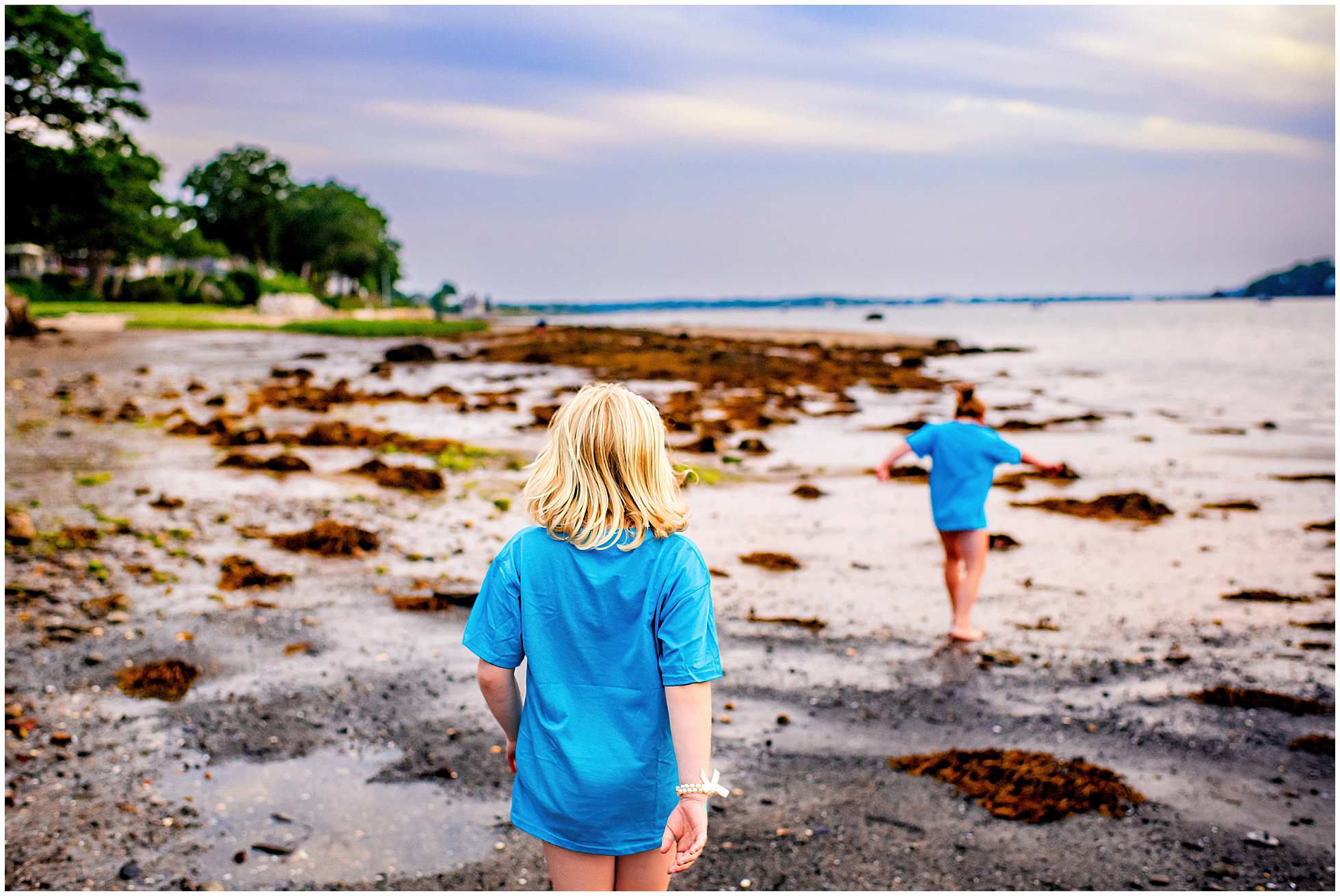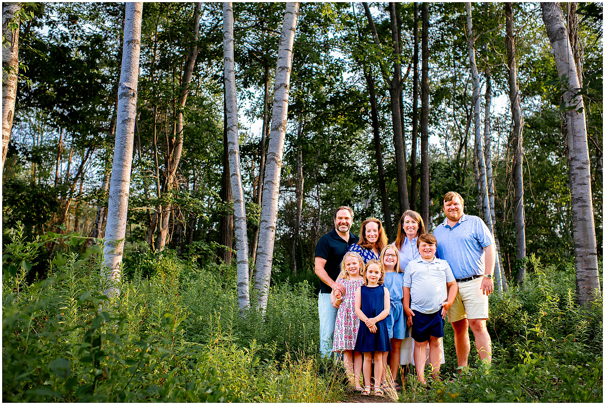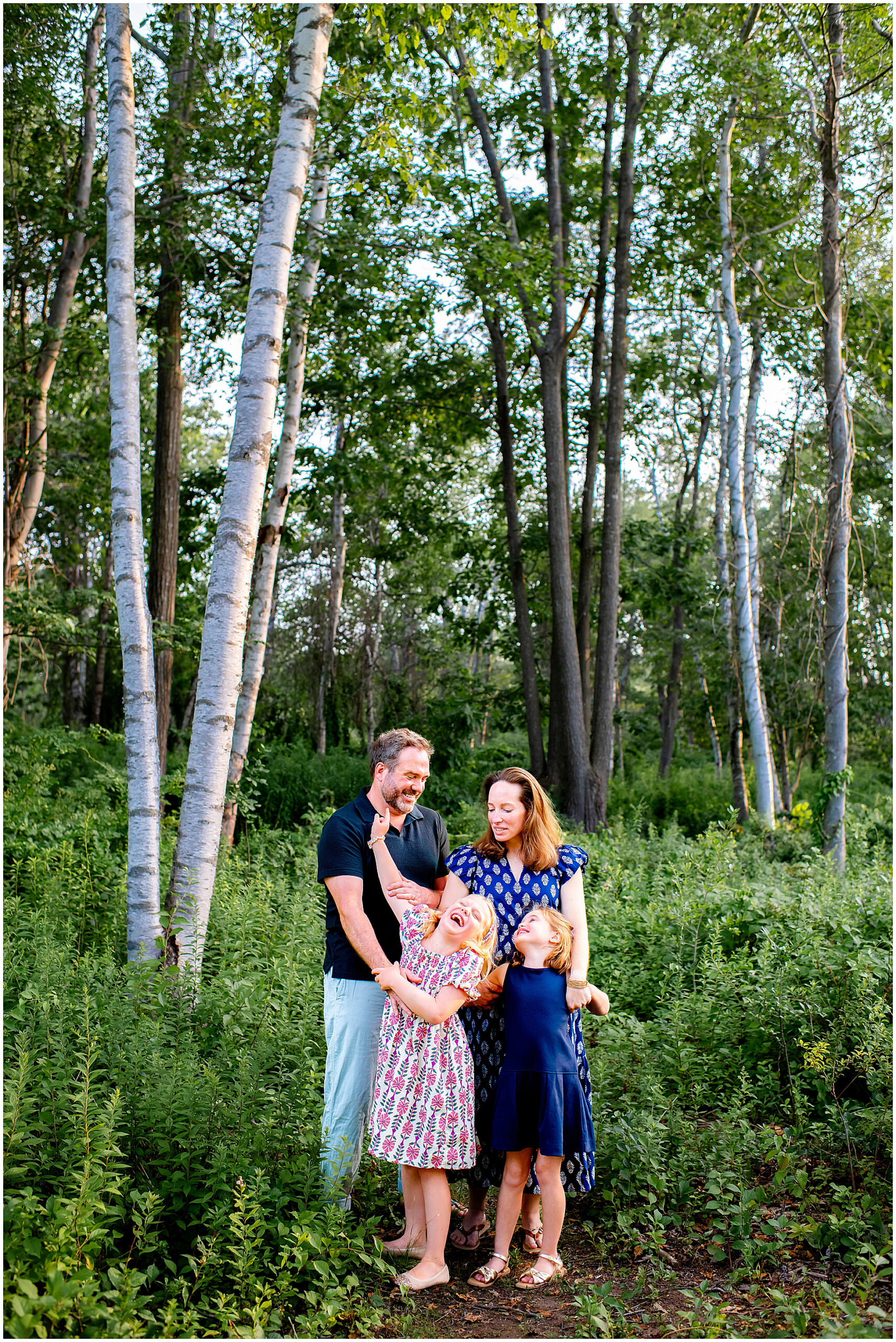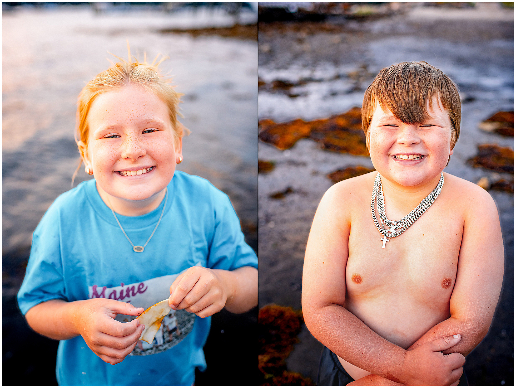 I took a little blogging and social media hiatus last week to get caught up (so many sessions! So few editing hours!), and I can think of no better way to come back online this week than with the F and G Families. For six years now I have had the pleasure of photographing these two families together as they travel to Maine for their annual summer getaway from their homes in Virginia and North Carolina. I’ve always appreciated how easy and how fun it is to spend time with these guys and at this point, our two hour lifestyle and portrait sessions feel like hanging out and taking photos of friends. All four kiddos are so comfortable with the camera and our routine of exploring fun areas wherever we are while taking family and group photos in between, and I’m always sad to leave them all at the end of our time together. This year was our fourth session on Peaks Island and we explored areas that were new to me in the woods of the island, before heading to a sandy beach on the north side, and finally doing a little splashing at the very end before I took the ferry back to Portland. It was a hazy night, but a gorgeous one on the island, and another one for the books with these really special families. I love capturing their Maine adventures and am so grateful for year six with this crew.