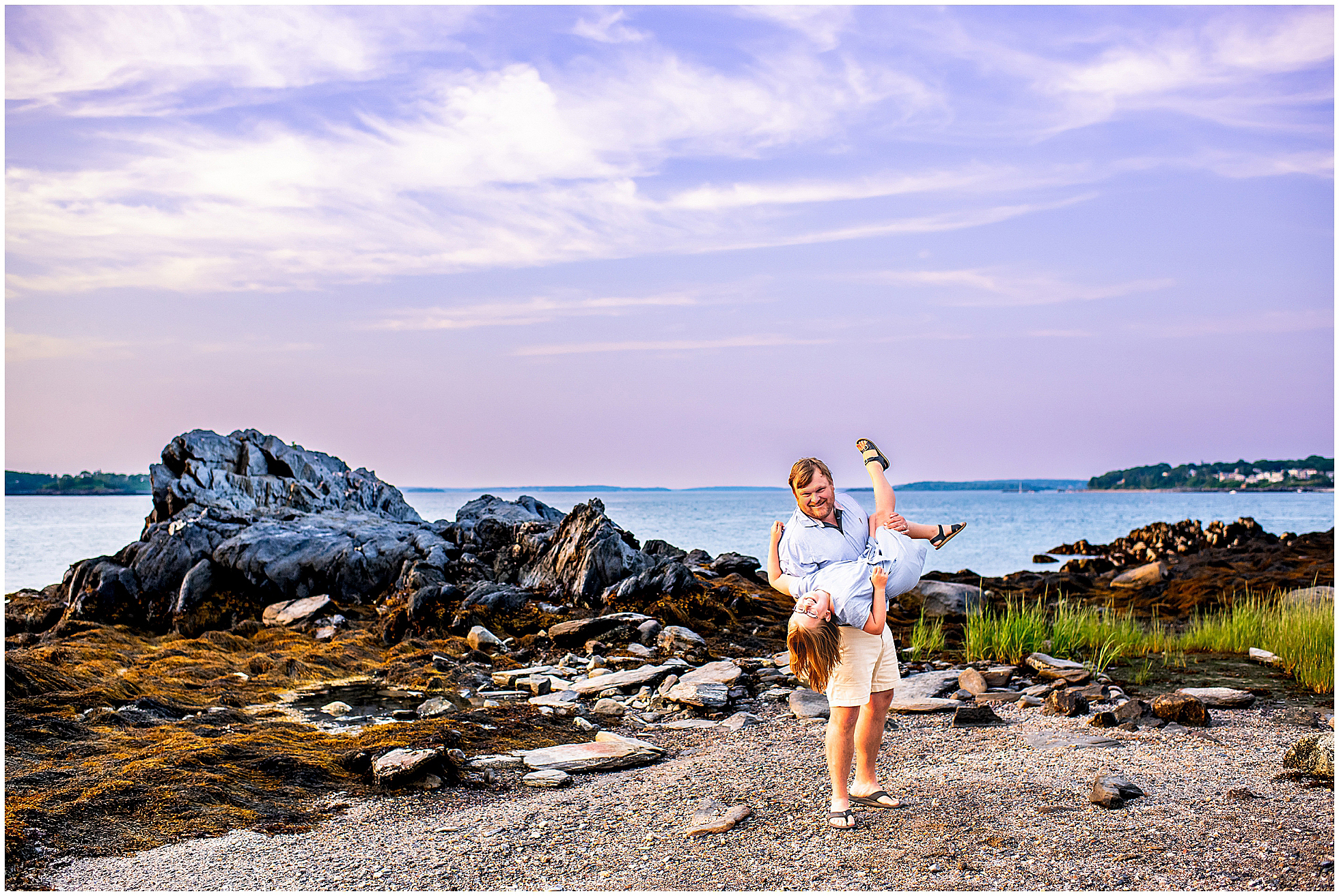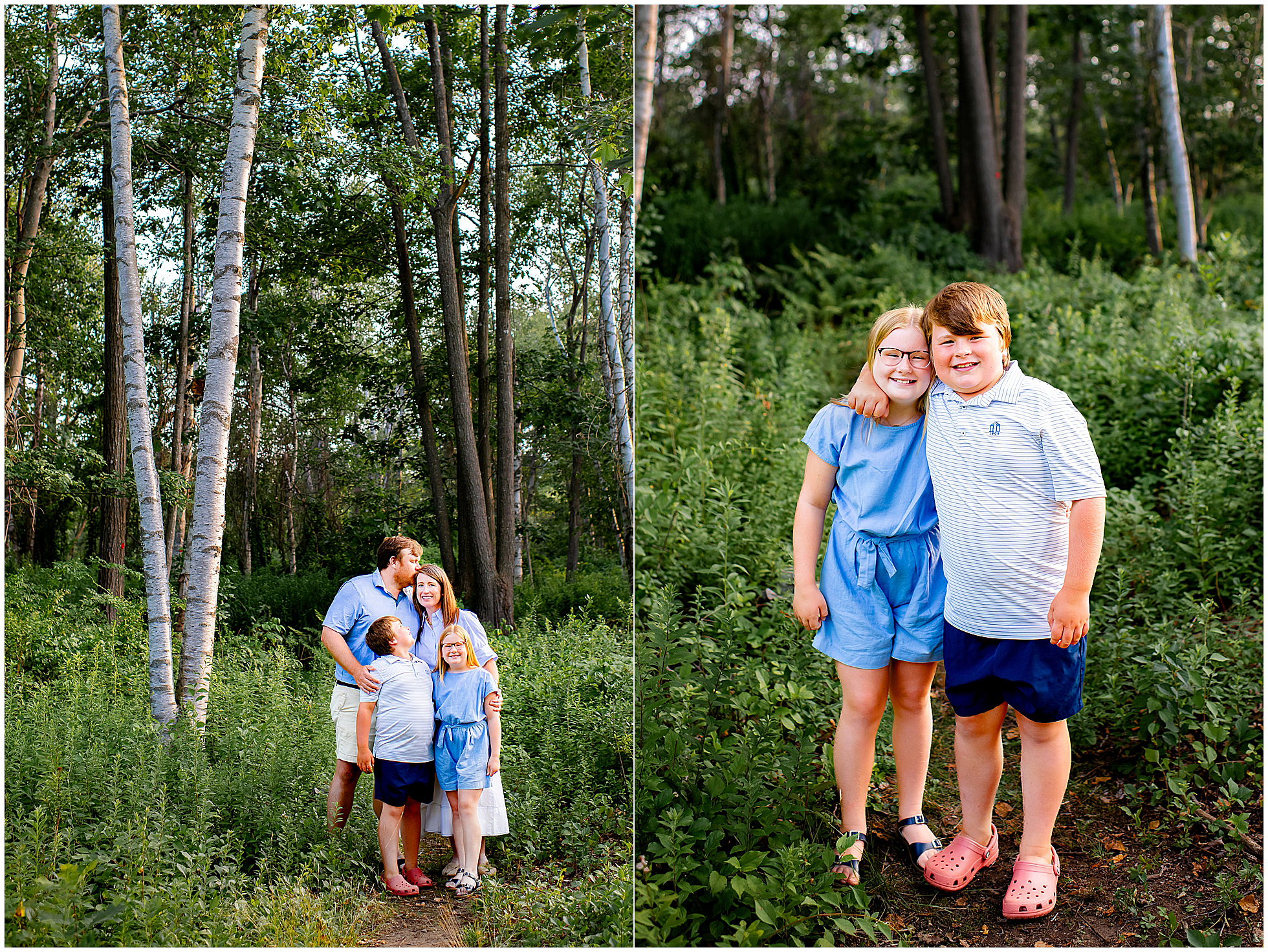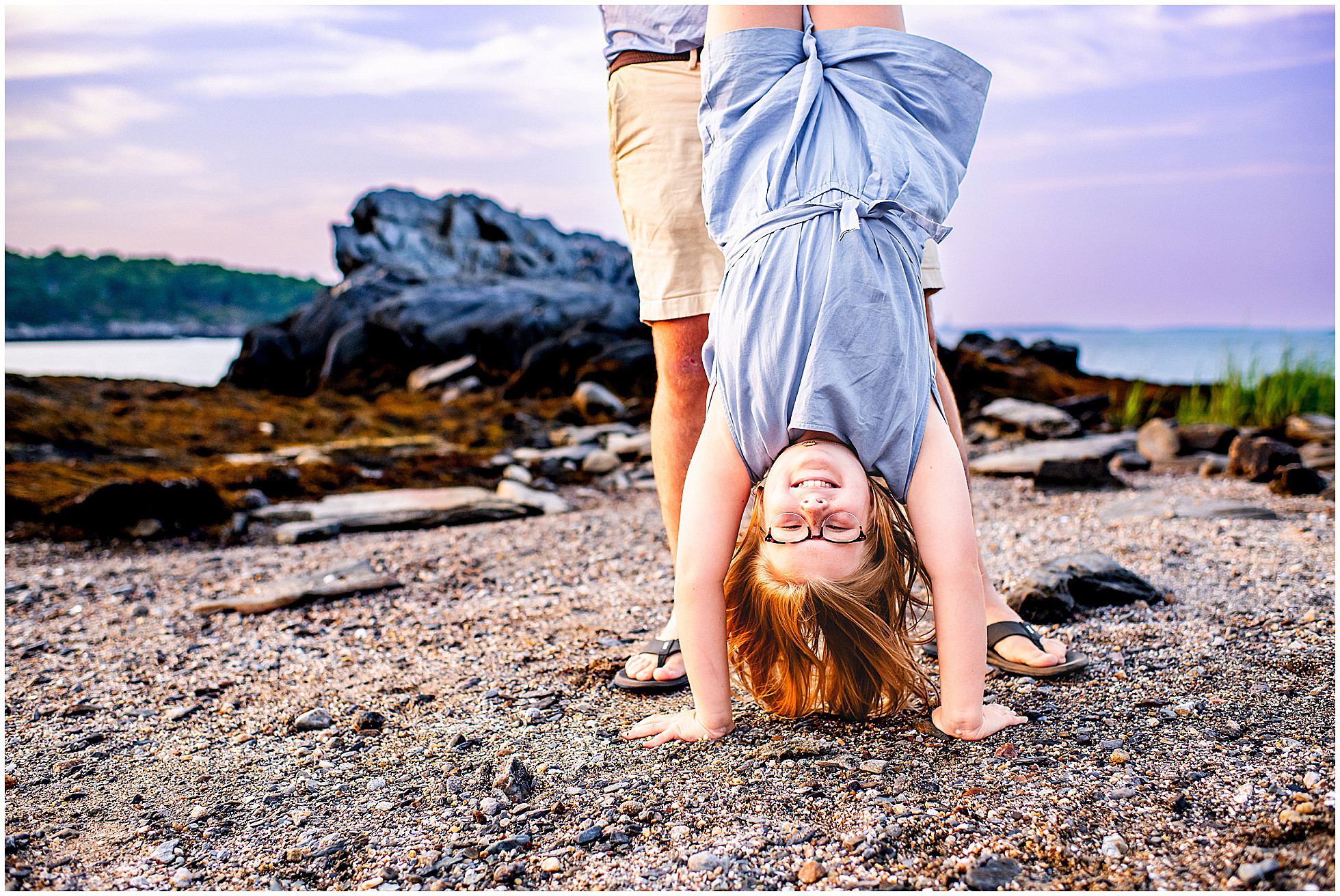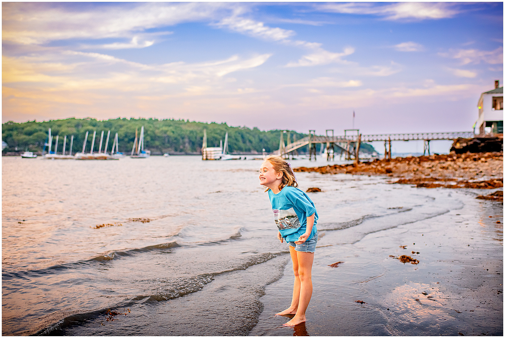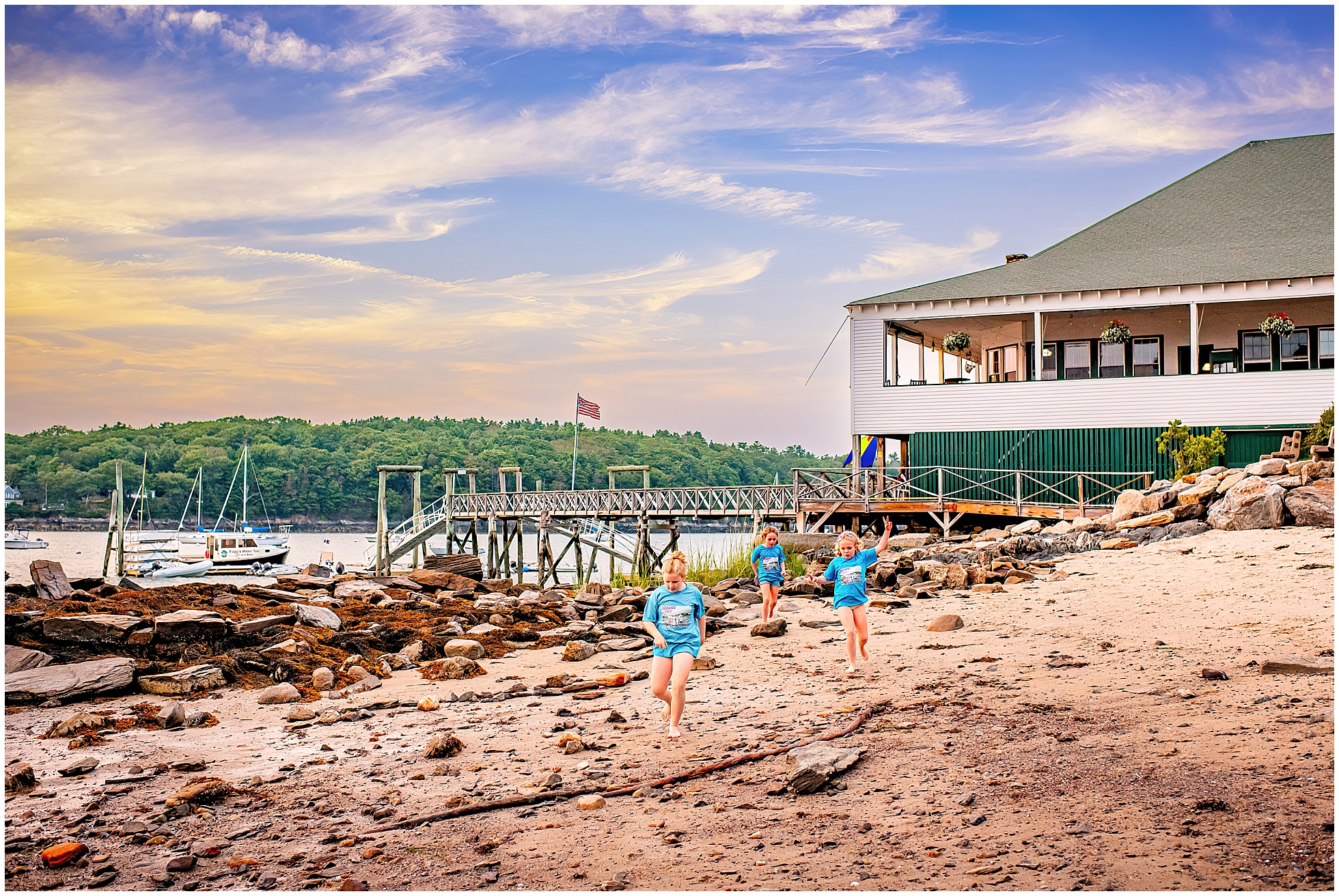 I took a little blogging and social media hiatus last week to get caught up (so many sessions! So few editing hours!), and I can think of no better way to come back online this week than with the F and G Families. For six years now I have had the pleasure of photographing these two families together as they travel to Maine for their annual summer getaway from their homes in Virginia and North Carolina. I’ve always appreciated how easy and how fun it is to spend time with these guys and at this point, our two hour lifestyle and portrait sessions feel like hanging out and taking photos of friends. All four kiddos are so comfortable with the camera and our routine of exploring fun areas wherever we are while taking family and group photos in between, and I’m always sad to leave them all at the end of our time together. This year was our fourth session on Peaks Island and we explored areas that were new to me in the woods of the island, before heading to a sandy beach on the north side, and finally doing a little splashing at the very end before I took the ferry back to Portland. It was a hazy night, but a gorgeous one on the island, and another one for the books with these really special families. I love capturing their Maine adventures and am so grateful for year six with this crew.