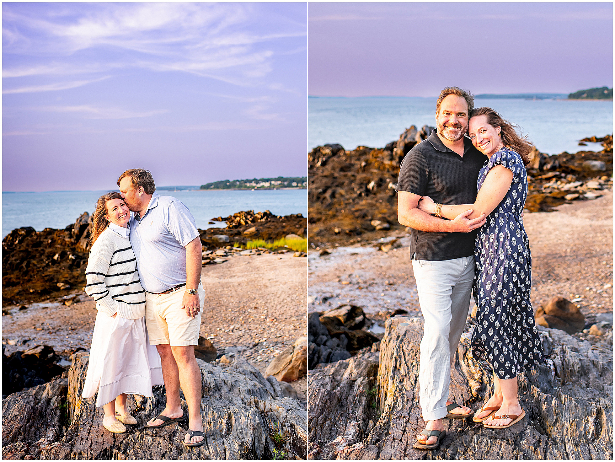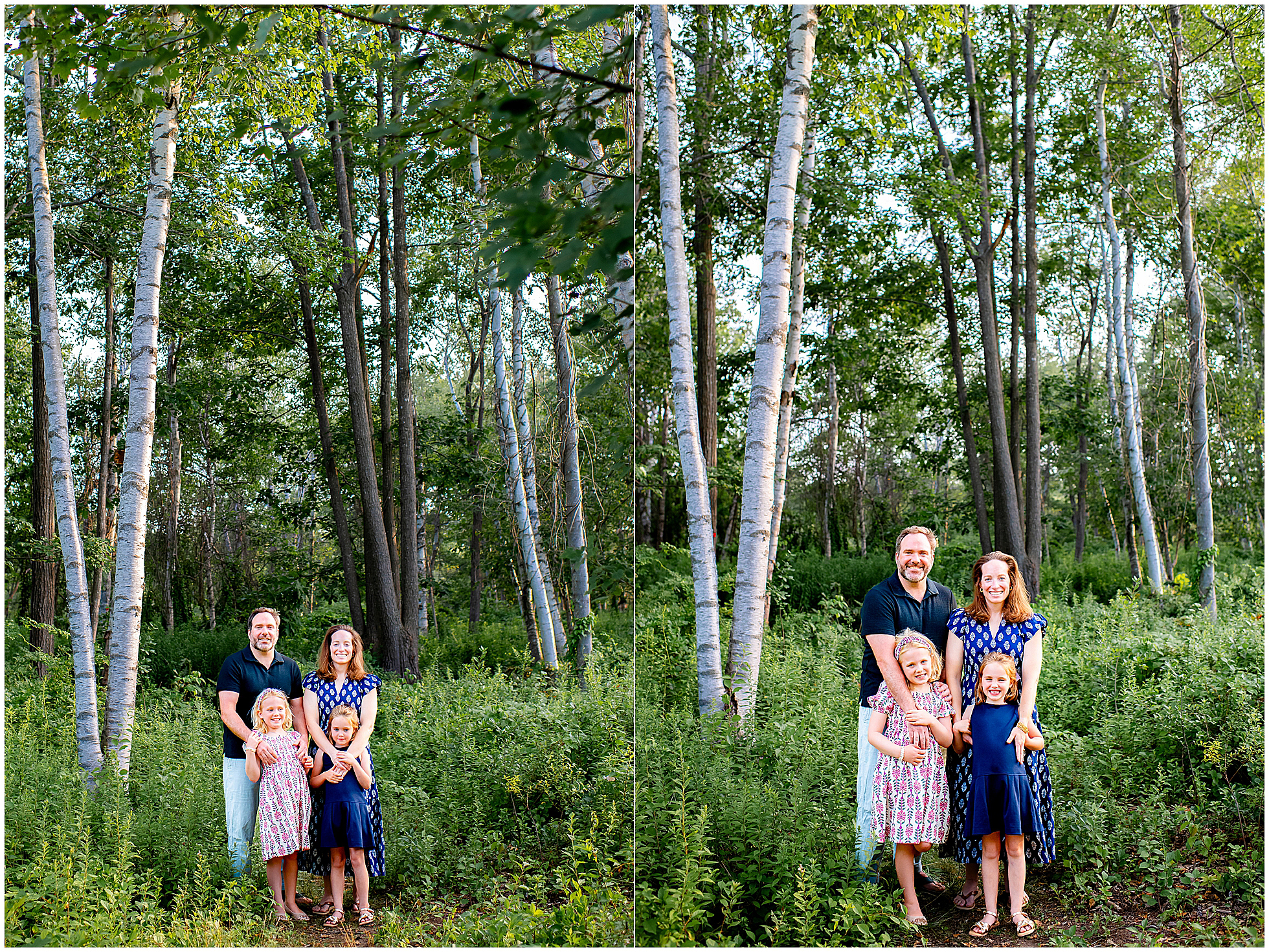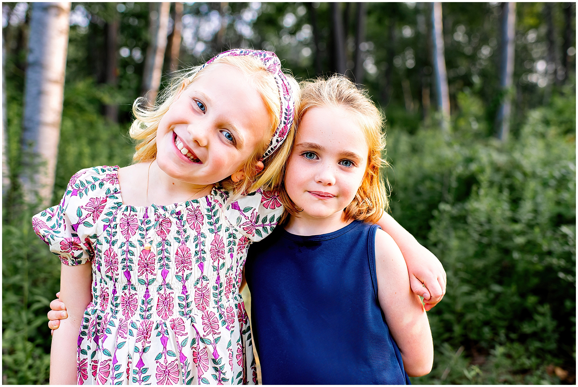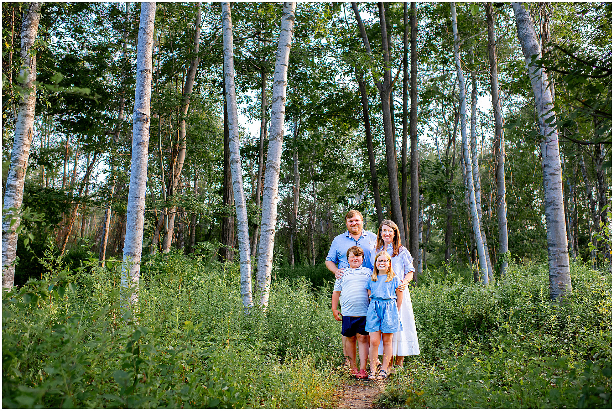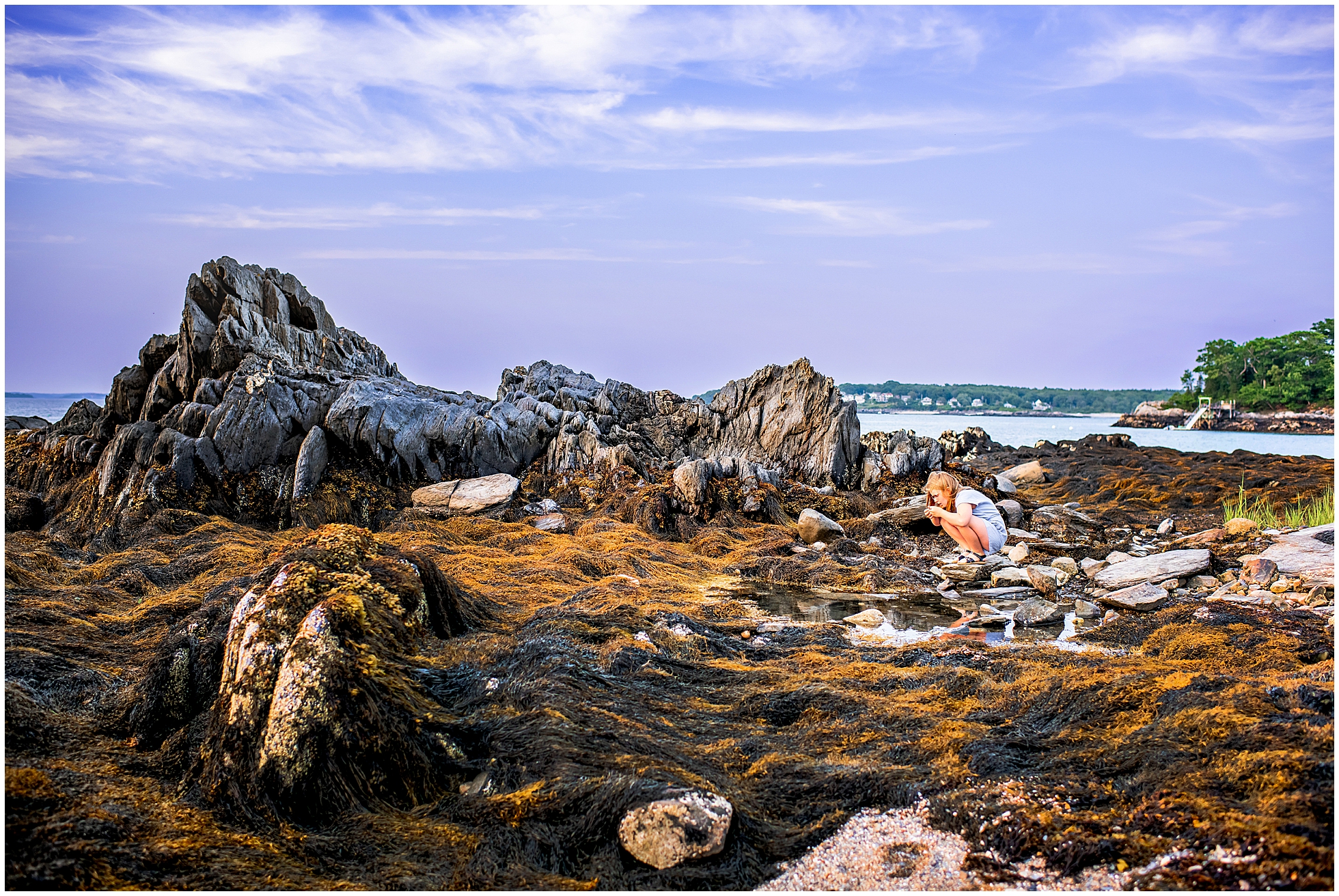 I took a little blogging and social media hiatus last week to get caught up (so many sessions! So few editing hours!), and I can think of no better way to come back online this week than with the F and G Families. For six years now I have had the pleasure of photographing these two families together as they travel to Maine for their annual summer getaway from their homes in Virginia and North Carolina. I’ve always appreciated how easy and how fun it is to spend time with these guys and at this point, our two hour lifestyle and portrait sessions feel like hanging out and taking photos of friends. All four kiddos are so comfortable with the camera and our routine of exploring fun areas wherever we are while taking family and group photos in between, and I’m always sad to leave them all at the end of our time together. This year was our fourth session on Peaks Island and we explored areas that were new to me in the woods of the island, before heading to a sandy beach on the north side, and finally doing a little splashing at the very end before I took the ferry back to Portland. It was a hazy night, but a gorgeous one on the island, and another one for the books with these really special families. I love capturing their Maine adventures and am so grateful for year six with this crew.