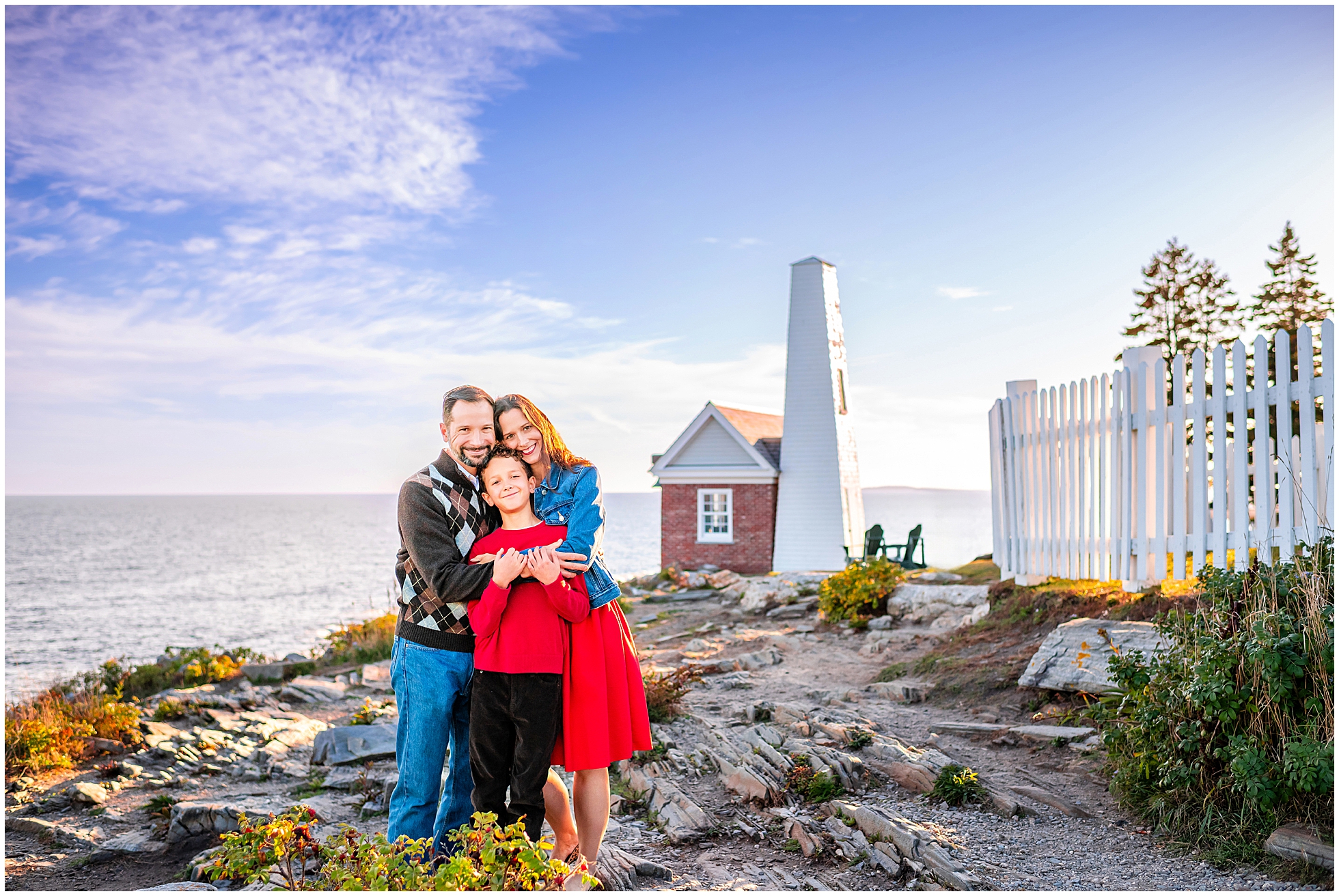 Seven years ago, I first met Alisa, Dick, and James in Boothbay, and as we rode in their canoe to an island off the coast, I quickly learned that photo sessions with this crew were going to be an adventure. Each summer since then they have brought me somewhere new and different, and this year I was super excited when Alisa informed me they had chosen Pemaquid for their session. I had only been to Pemaquid once before, and was excited to return and do a family session there. I will be honest and share that I was not totally prepared for how bright this spot is, and so we had to get a little creative and be a little patient as we waited out the setting sun, but the benefit to building relationships is trust – and I am so grateful that these guys trusted me when I said we needed to hang out for a bit and get a little creative with the locations around the property. The wait times and exploration were well worth it, as we were treated to the most fabulous sunset at the very end of our time. I love photographing this family – I love how close they are, how much James loves to learn while playing, and what a great team Alisa and Dick are together. They have a big awesome year ahead of them in 2026, and I am excited to share my favorites from this year’s adventure before the next one.