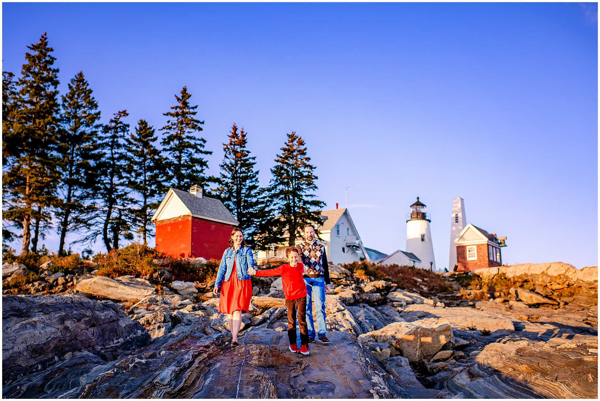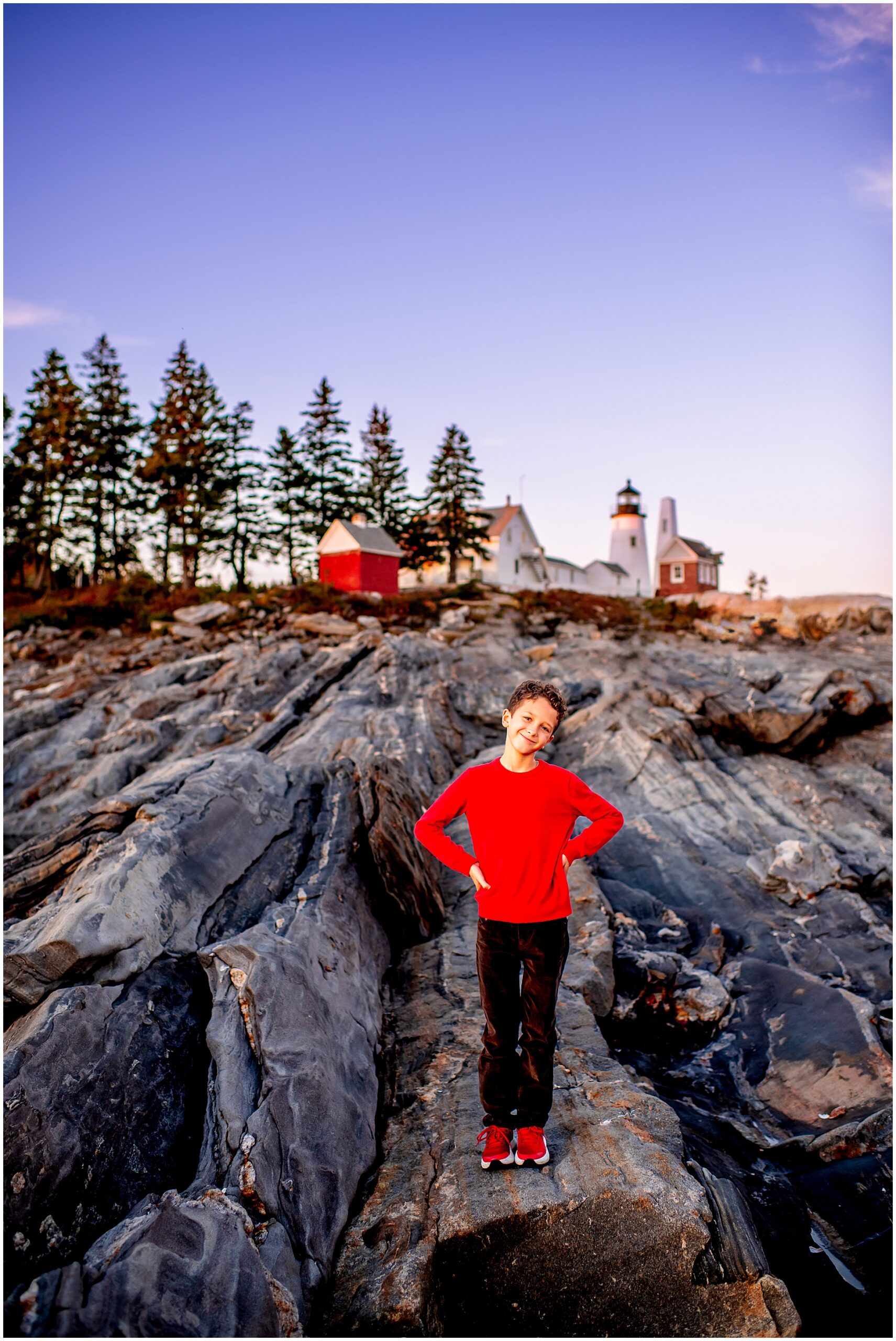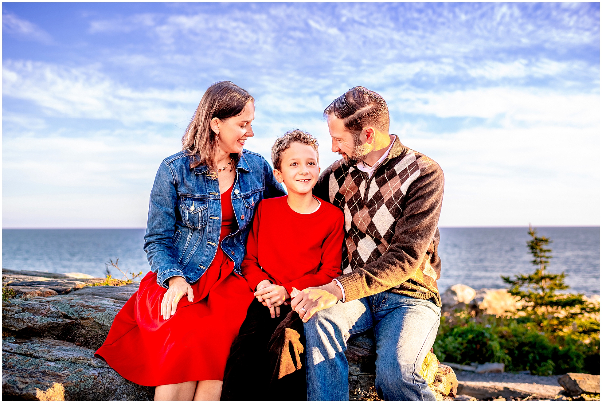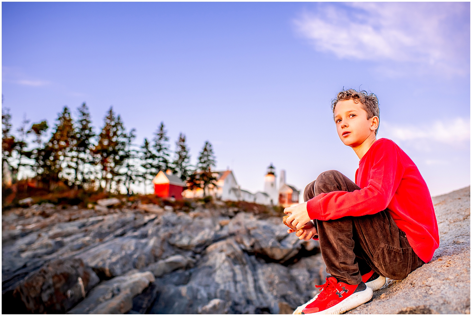 Seven years ago, I first met Alisa, Dick, and James in Boothbay, and as we rode in their canoe to an island off the coast, I quickly learned that photo sessions with this crew were going to be an adventure. Each summer since then they have brought me somewhere new and different, and this year I was super excited when Alisa informed me they had chosen Pemaquid for their session. I had only been to Pemaquid once before, and was excited to return and do a family session there. I will be honest and share that I was not totally prepared for how bright this spot is, and so we had to get a little creative and be a little patient as we waited out the setting sun, but the benefit to building relationships is trust – and I am so grateful that these guys trusted me when I said we needed to hang out for a bit and get a little creative with the locations around the property. The wait times and exploration were well worth it, as we were treated to the most fabulous sunset at the very end of our time. I love photographing this family – I love how close they are, how much James loves to learn while playing, and what a great team Alisa and Dick are together. They have a big awesome year ahead of them in 2026, and I am excited to share my favorites from this year’s adventure before the next one.