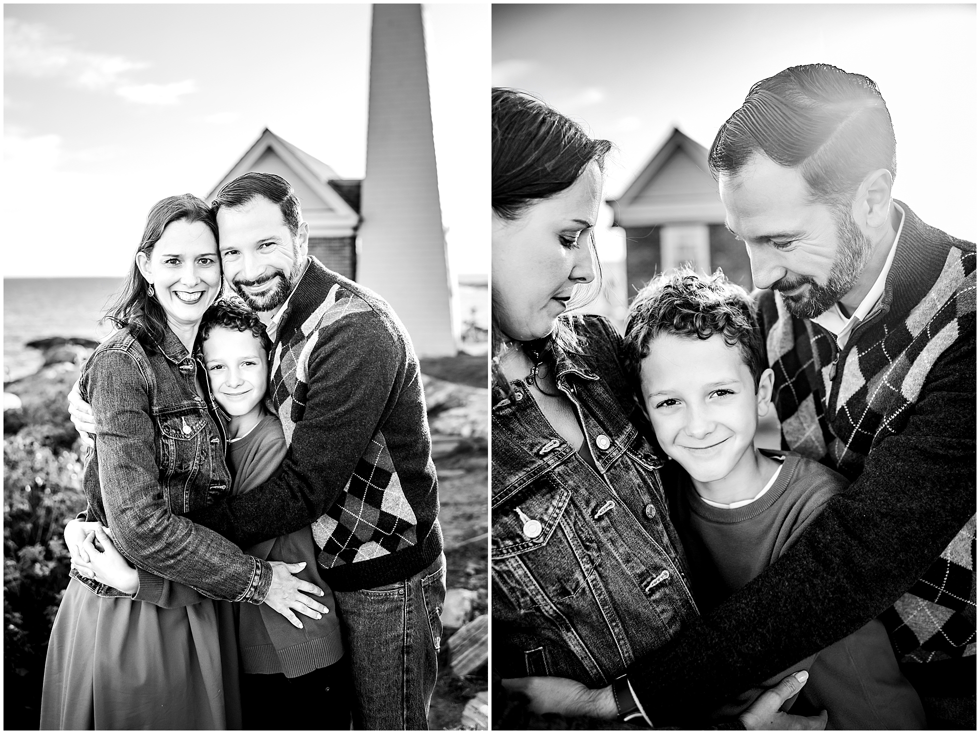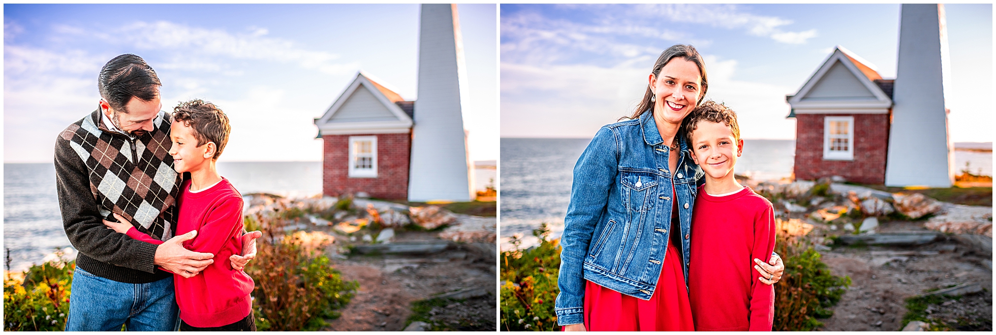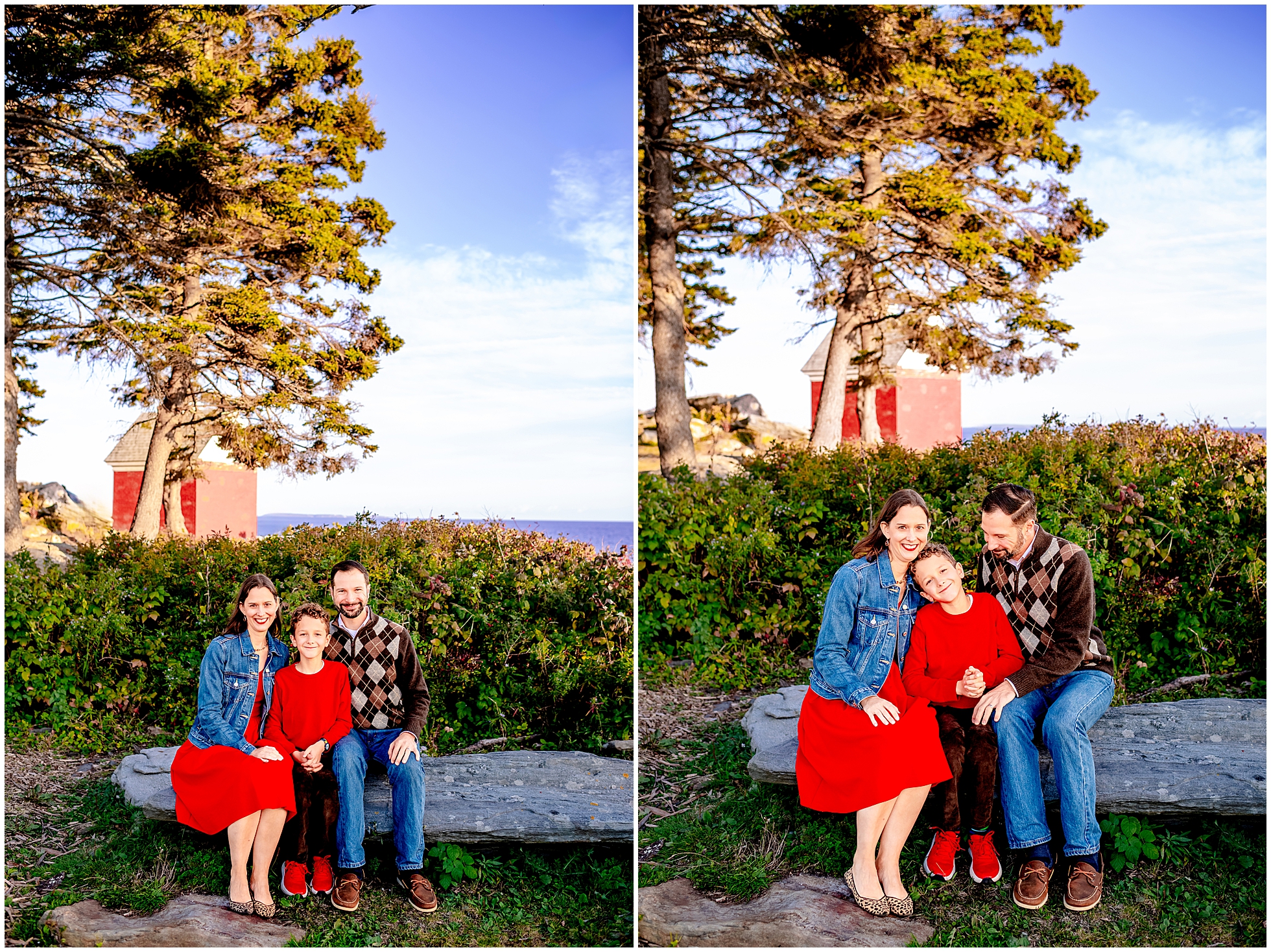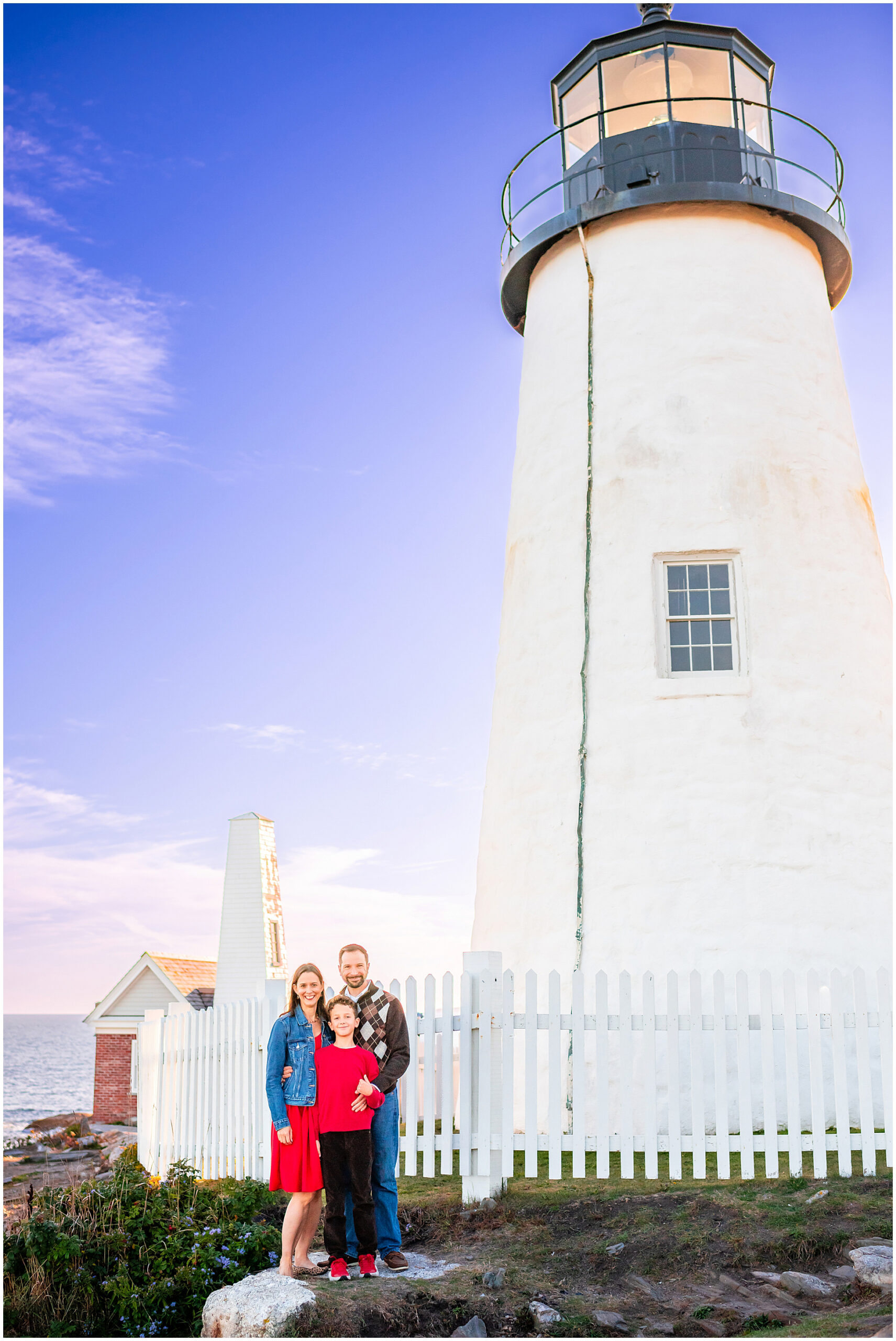 Seven years ago, I first met Alisa, Dick, and James in Boothbay, and as we rode in their canoe to an island off the coast, I quickly learned that photo sessions with this crew were going to be an adventure. Each summer since then they have brought me somewhere new and different, and this year I was super excited when Alisa informed me they had chosen Pemaquid for their session. I had only been to Pemaquid once before, and was excited to return and do a family session there. I will be honest and share that I was not totally prepared for how bright this spot is, and so we had to get a little creative and be a little patient as we waited out the setting sun, but the benefit to building relationships is trust – and I am so grateful that these guys trusted me when I said we needed to hang out for a bit and get a little creative with the locations around the property. The wait times and exploration were well worth it, as we were treated to the most fabulous sunset at the very end of our time. I love photographing this family – I love how close they are, how much James loves to learn while playing, and what a great team Alisa and Dick are together. They have a big awesome year ahead of them in 2026, and I am excited to share my favorites from this year’s adventure before the next one.