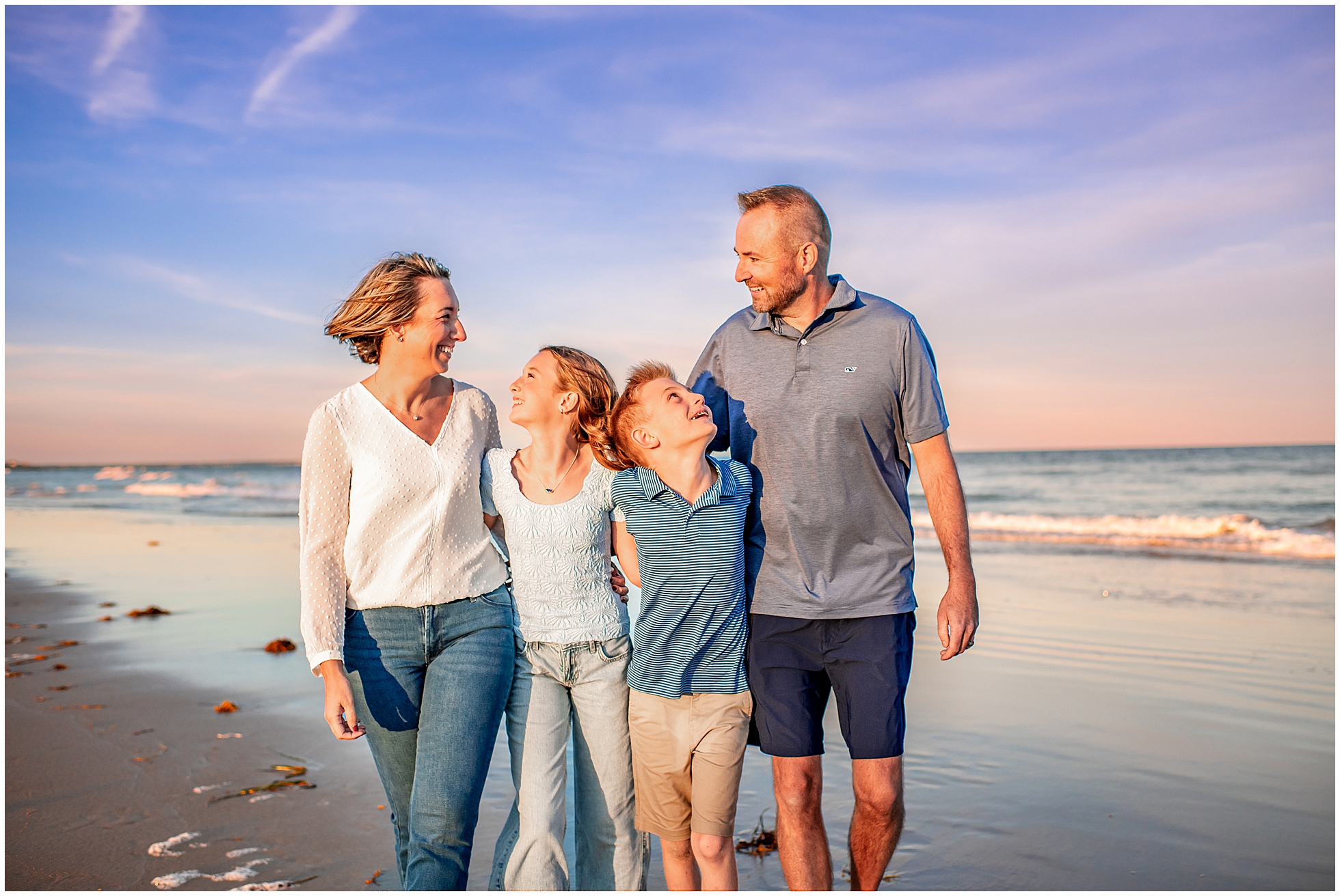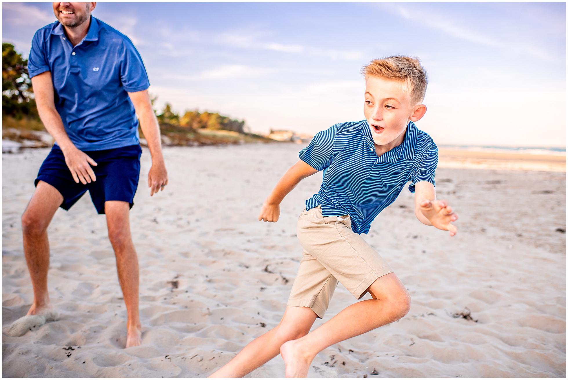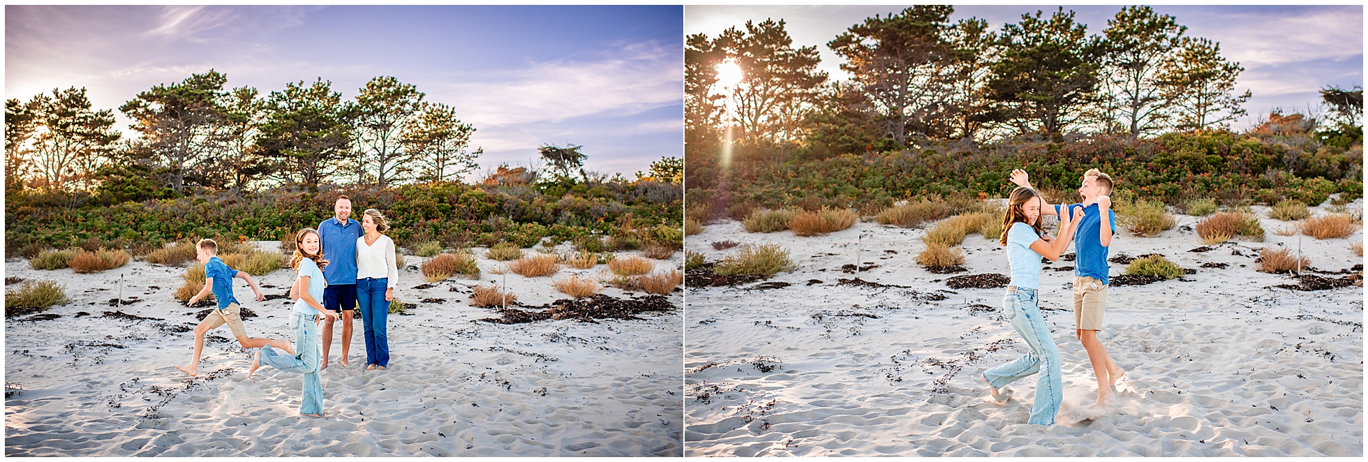 We are headed back to the beach on the blog today! It is grey and cold outside on this October afternoon, but back in mid-September when I got to hang out with the H Family, it was sunny and breezy, with gorgeous light and even more gorgeous humans. 💕 This was year 12 with this crew, but I’ve known them for much longer than that as they are all cousins on my husband’s side. They are nice enough to travel to Maine every year for our session, and it’s extra special because it means I get to spend an evening with them. The kids are growing up so, so fast, and this was the year that I wondered how much we would play. Lucky for us though, the kid in both Izzy and Liam is still in there and even though it took a few extra minutes for the silly to be released, once it was – it was game on. There was running, spinning, 6-7!, parkour, and all the hugs and love with their parents Meg and Brian that I know we’ll continue to capture as these two head into their teen and tween years. Every year is so special with these four, and I’m excited to share our fun Footbridge Beach session from this fall here today.