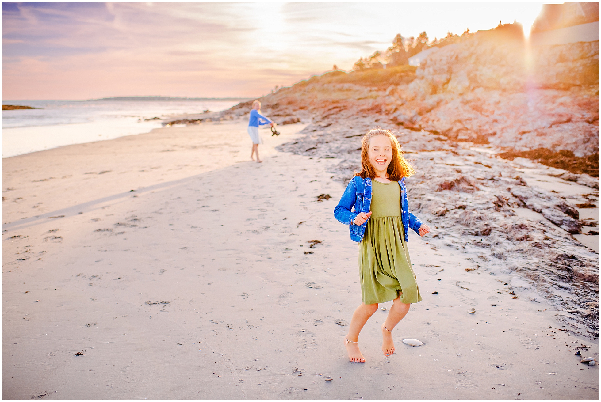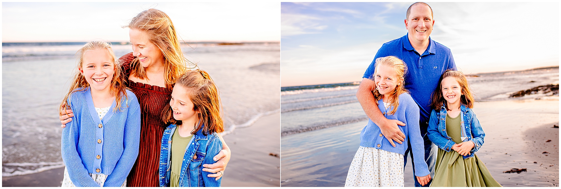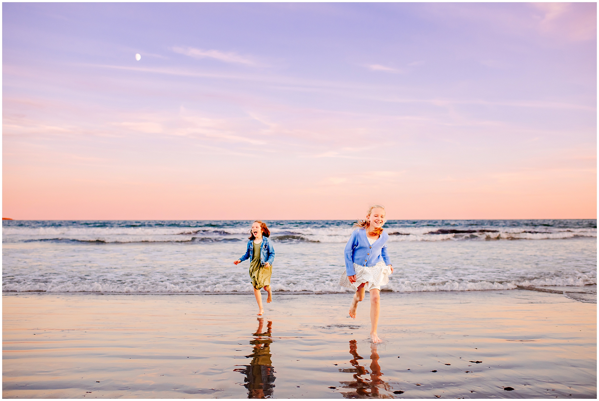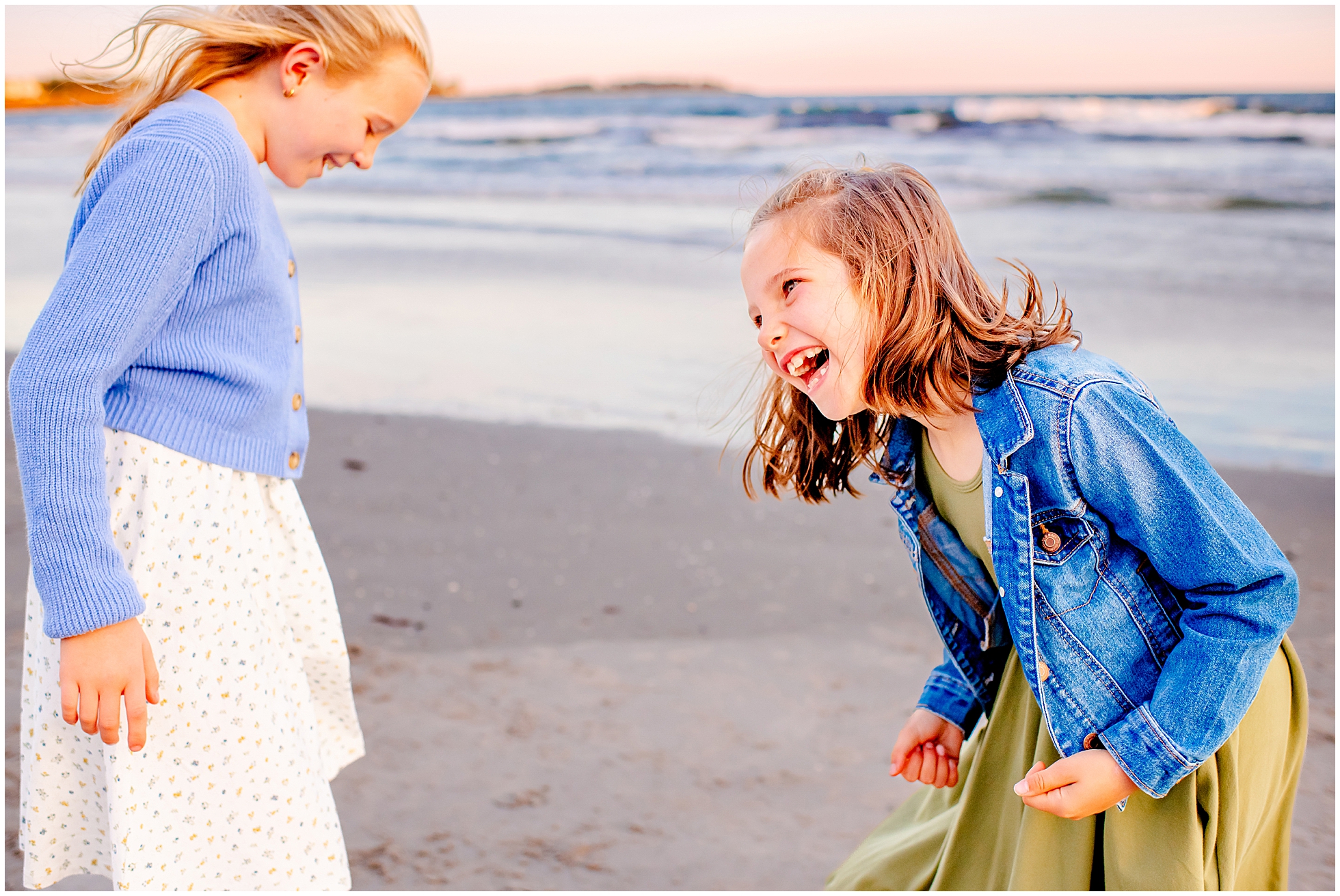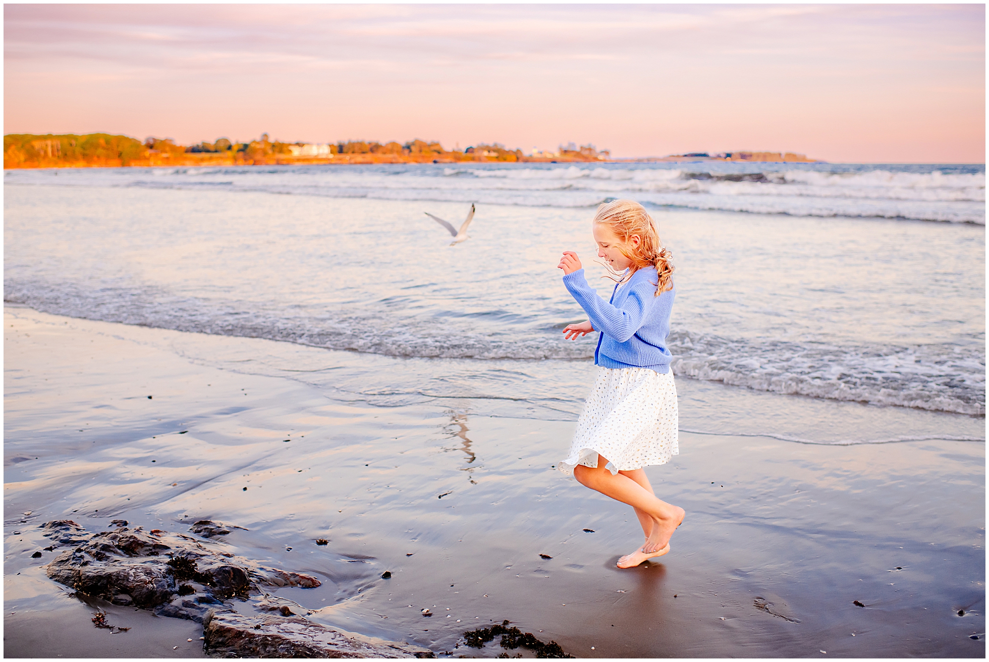 Happy Thanksgiving week, everyone! I’m finally getting to October sessions here on the blog and that means there is so much glowy fall goodness coming your way – but not before I share one final Higgins Beach session of the year! This year, the honor went to the M Family – Kelley, Matt, Amelia, and Bridget, and I could not have imagined a better way to wrap up Higgins sessions than with this crew. We had a stunning early October evening that went from bright and sunny to full on Higgins Magic, with cotton-candy skies making way to a glorious pink and orange sunset. Amelia and Bridget were a little timid for about 2.5 seconds, and then these two were off to the races – running circles around me and their parents, and full of all the giggles. It was so wonderful to see these four again, and I loved our early fall beach session with this beautiful and fun family. 💕
