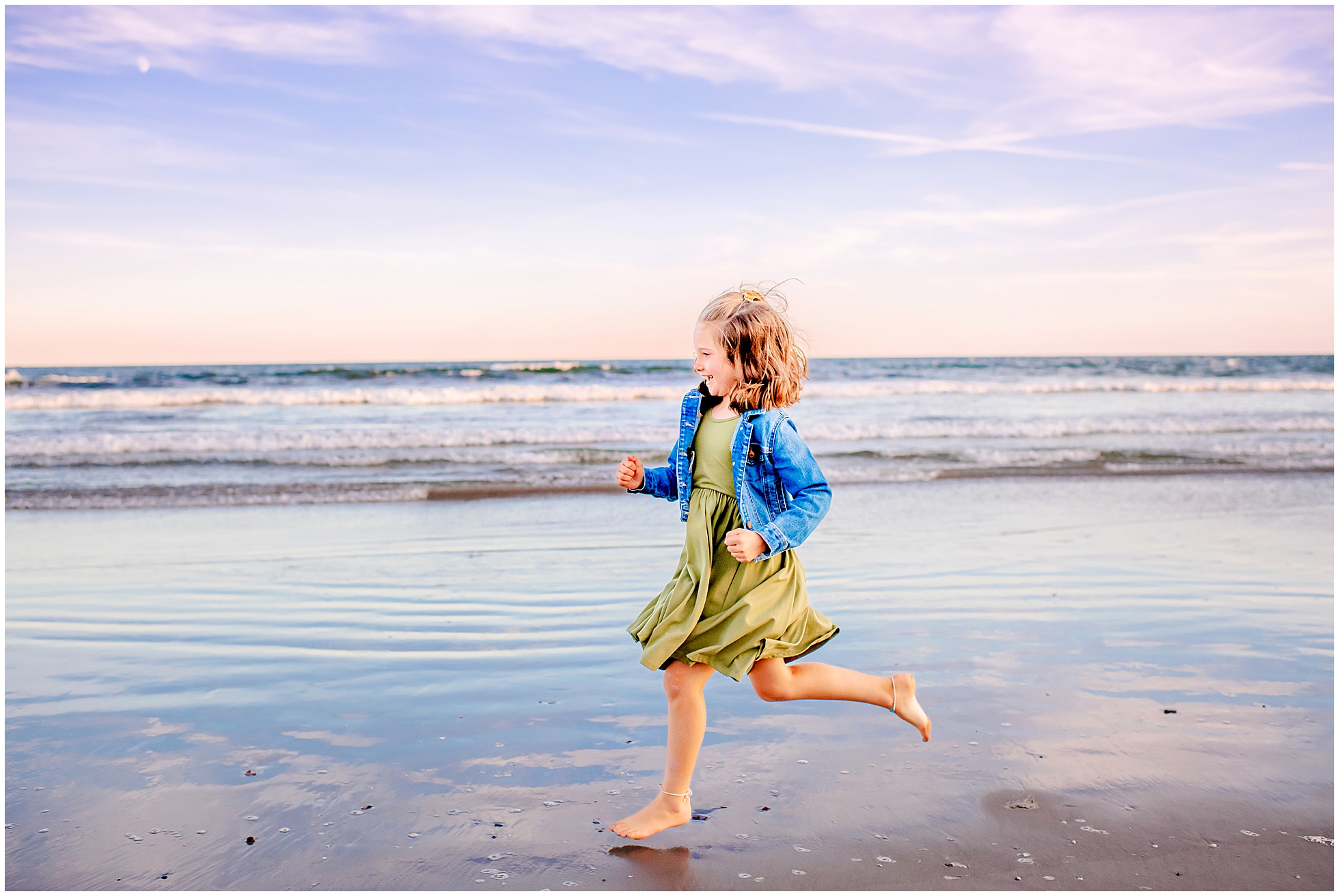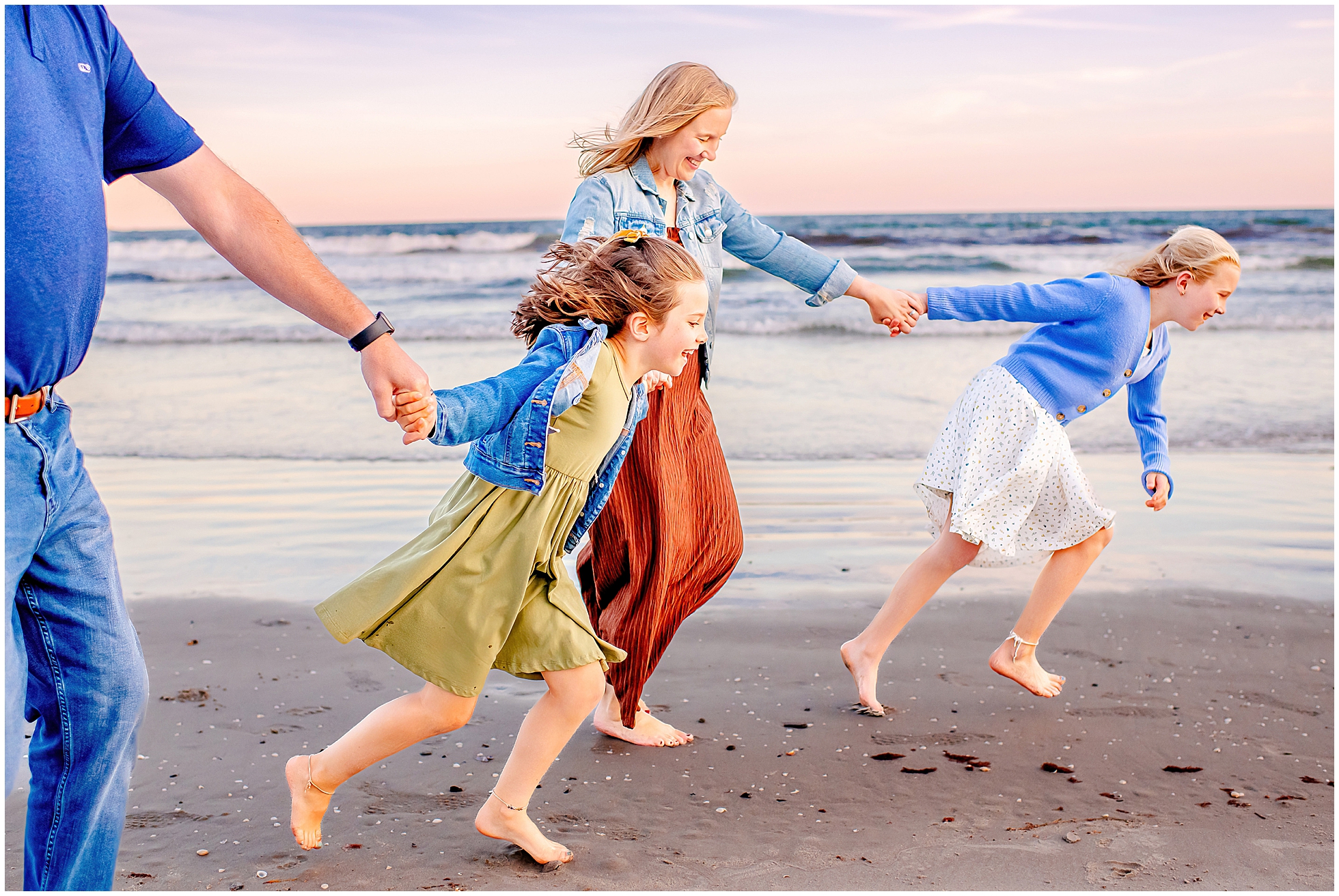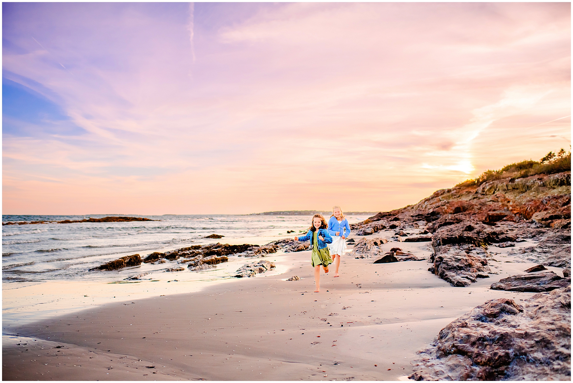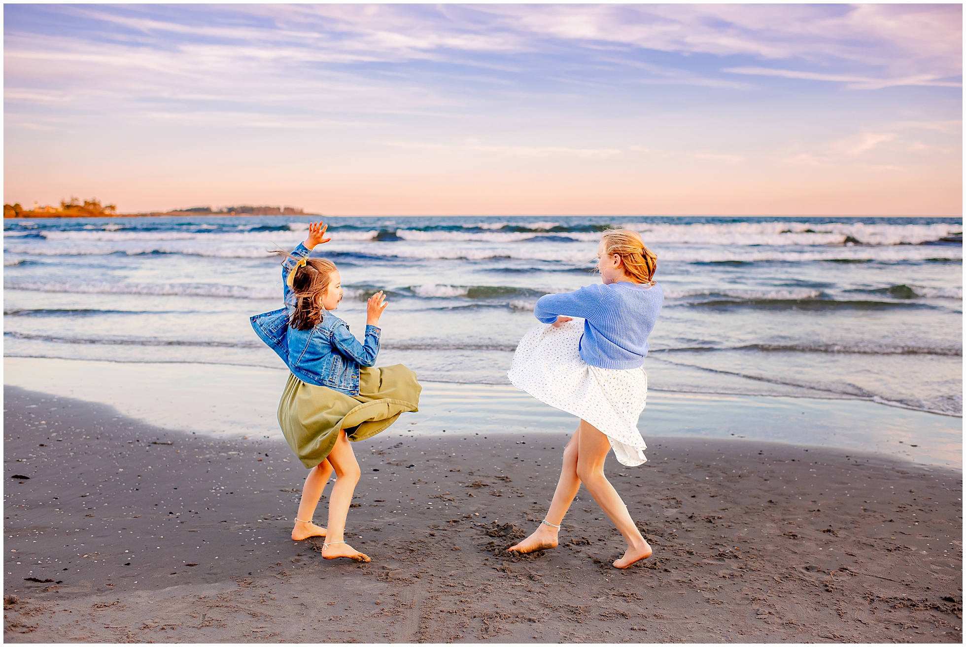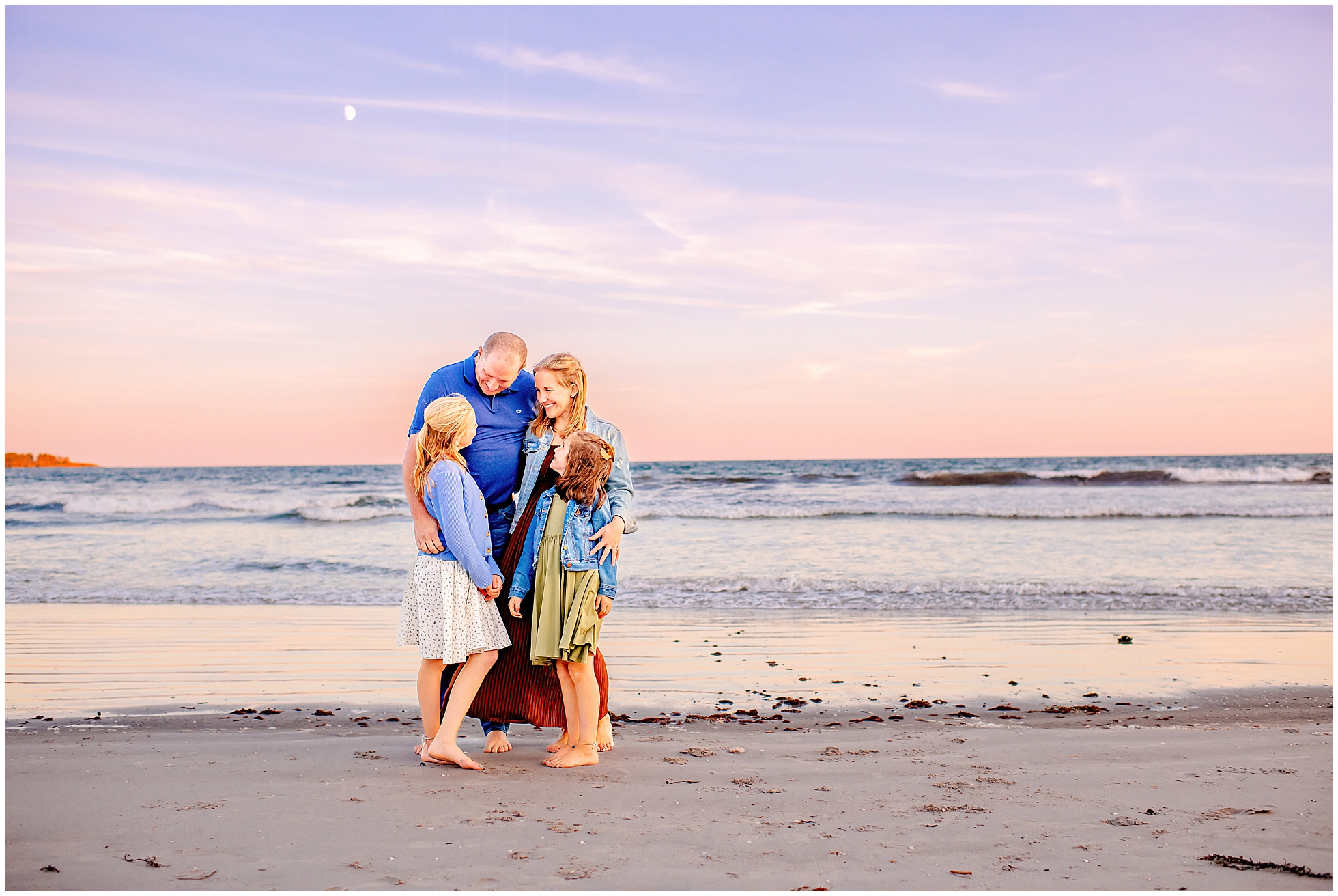 Happy Thanksgiving week, everyone! I’m finally getting to October sessions here on the blog and that means there is so much glowy fall goodness coming your way – but not before I share one final Higgins Beach session of the year! This year, the honor went to the M Family – Kelley, Matt, Amelia, and Bridget, and I could not have imagined a better way to wrap up Higgins sessions than with this crew. We had a stunning early October evening that went from bright and sunny to full on Higgins Magic, with cotton-candy skies making way to a glorious pink and orange sunset. Amelia and Bridget were a little timid for about 2.5 seconds, and then these two were off to the races – running circles around me and their parents, and full of all the giggles. It was so wonderful to see these four again, and I loved our early fall beach session with this beautiful and fun family. 💕