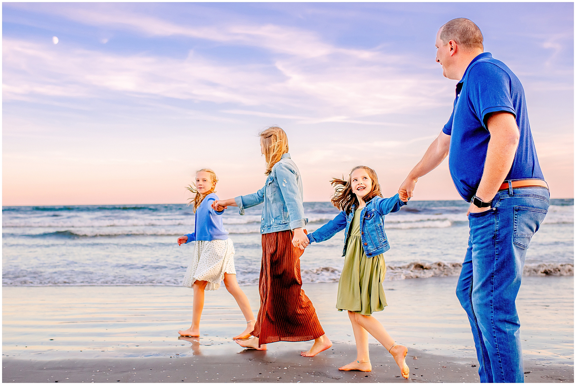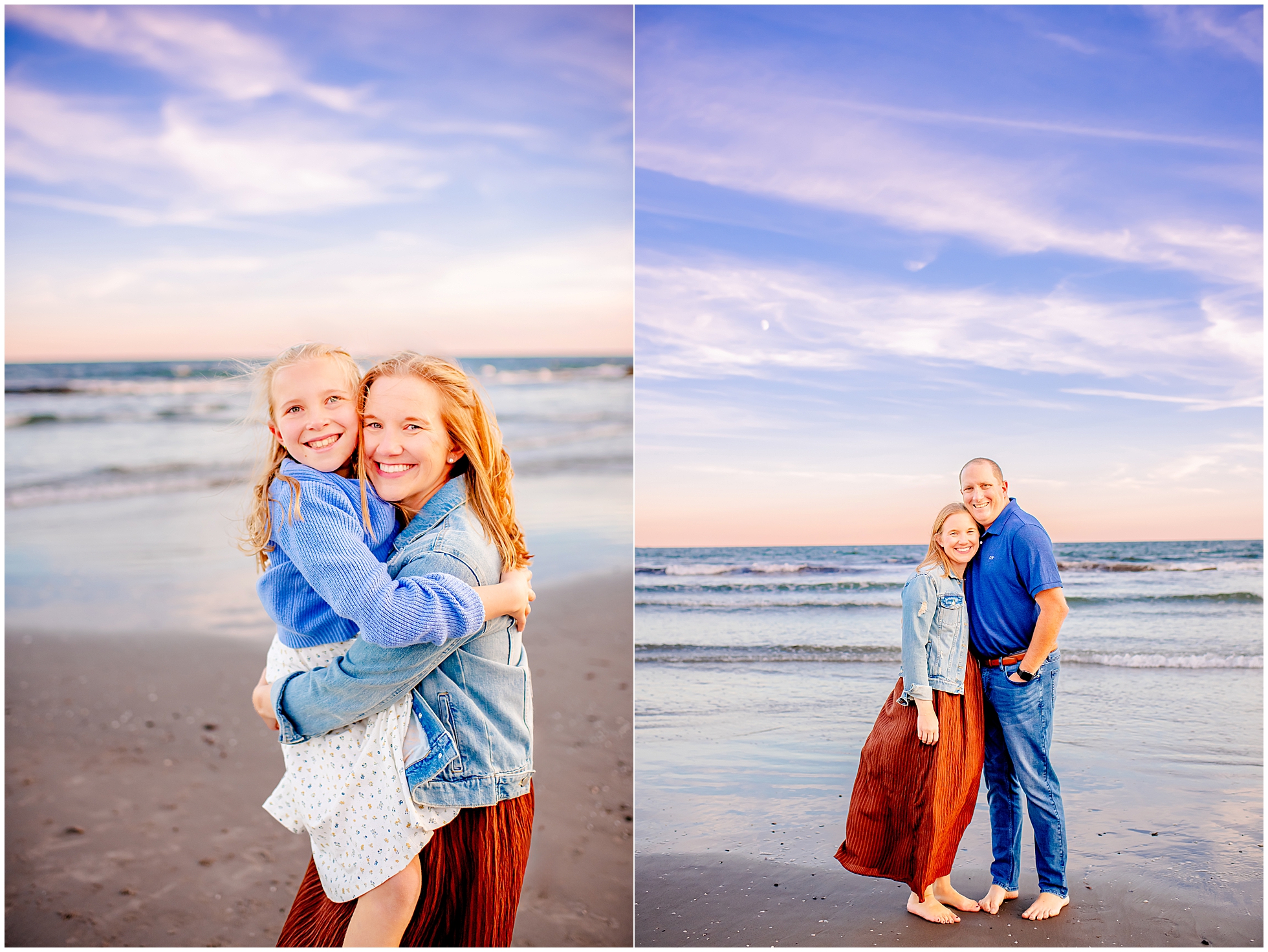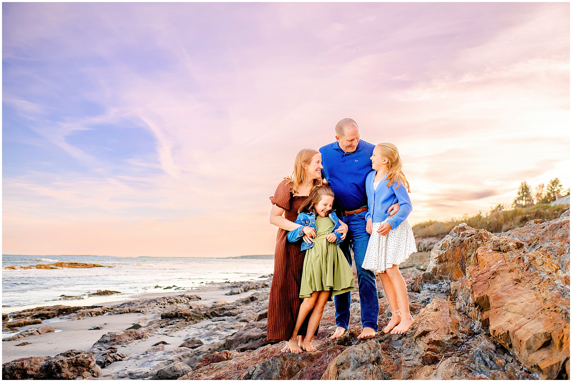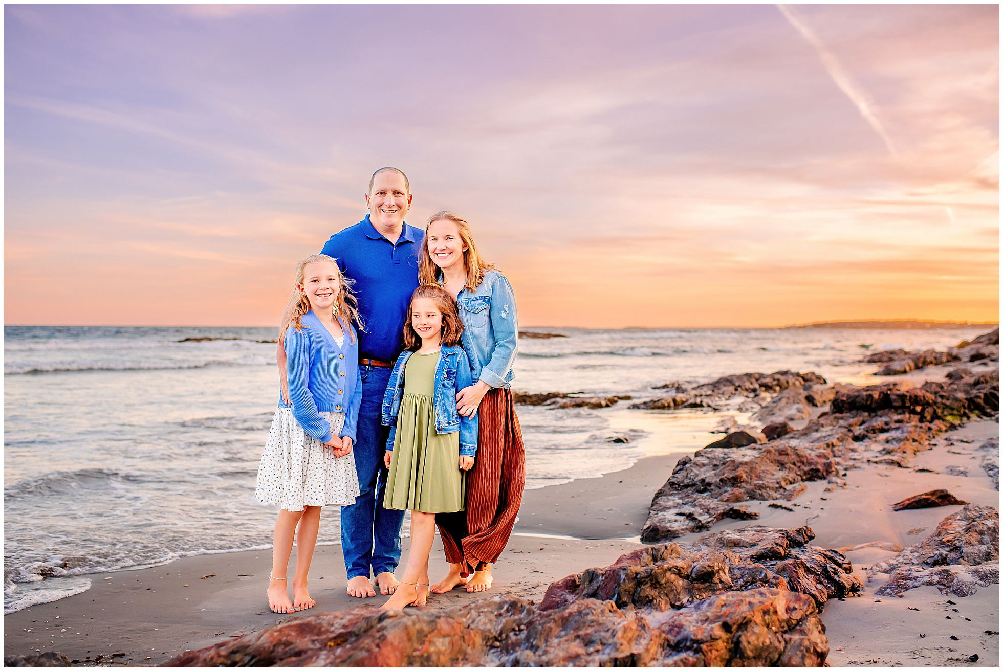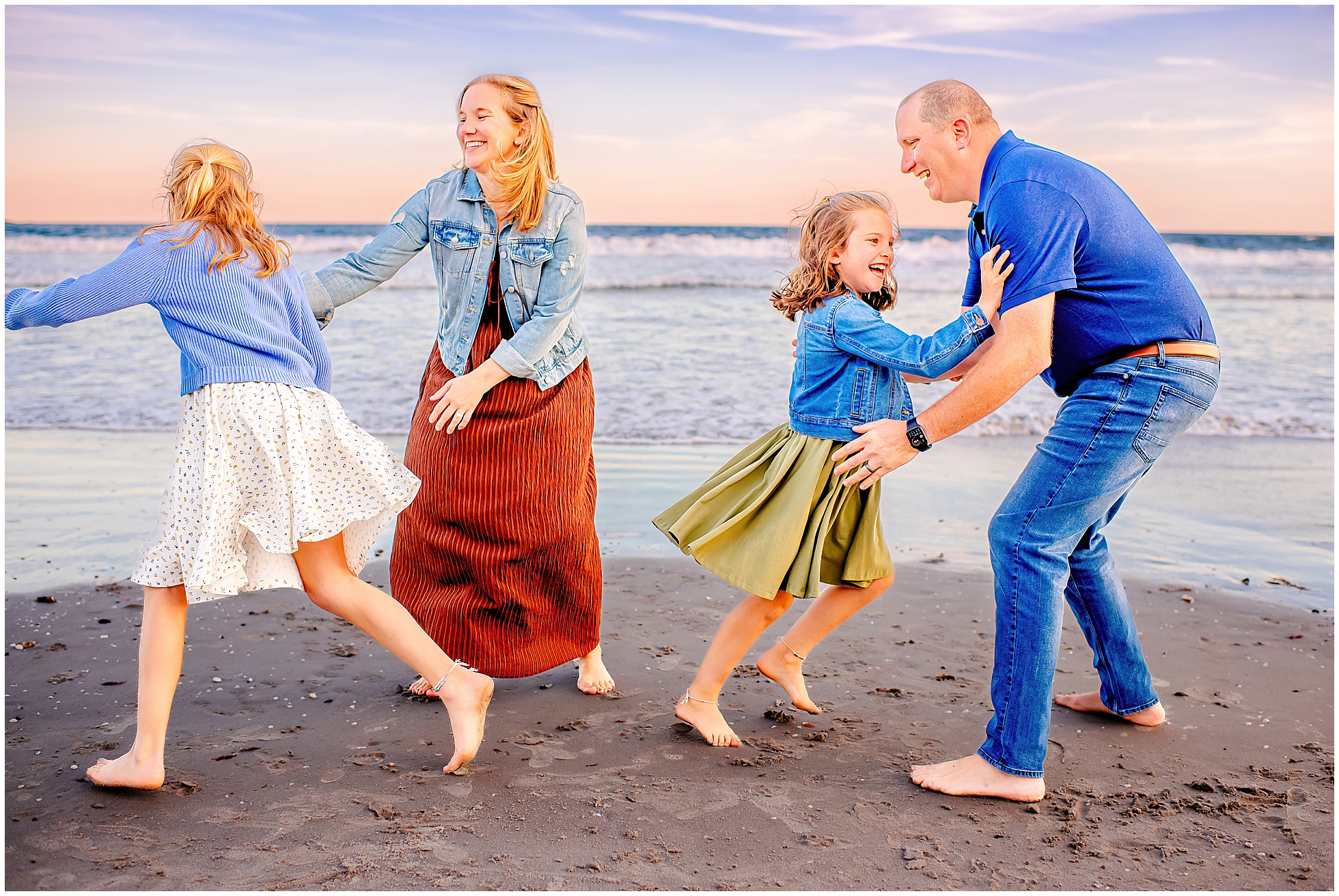 Happy Thanksgiving week, everyone! I’m finally getting to October sessions here on the blog and that means there is so much glowy fall goodness coming your way – but not before I share one final Higgins Beach session of the year! This year, the honor went to the M Family – Kelley, Matt, Amelia, and Bridget, and I could not have imagined a better way to wrap up Higgins sessions than with this crew. We had a stunning early October evening that went from bright and sunny to full on Higgins Magic, with cotton-candy skies making way to a glorious pink and orange sunset. Amelia and Bridget were a little timid for about 2.5 seconds, and then these two were off to the races – running circles around me and their parents, and full of all the giggles. It was so wonderful to see these four again, and I loved our early fall beach session with this beautiful and fun family. 💕