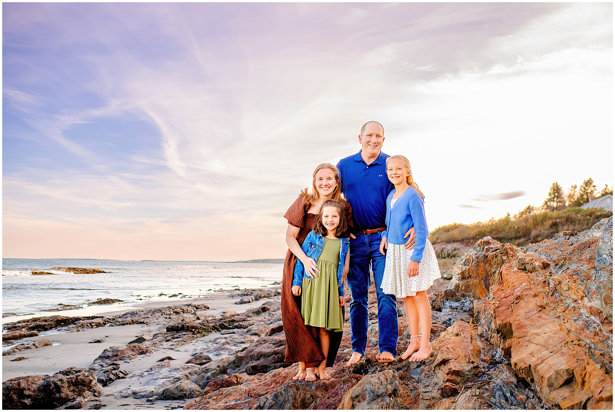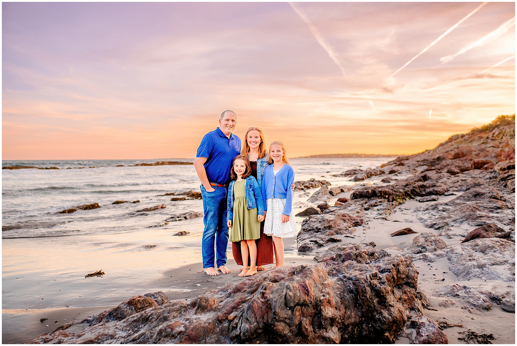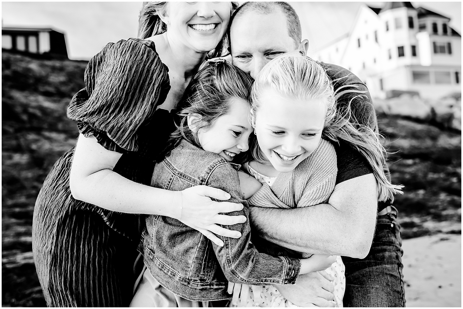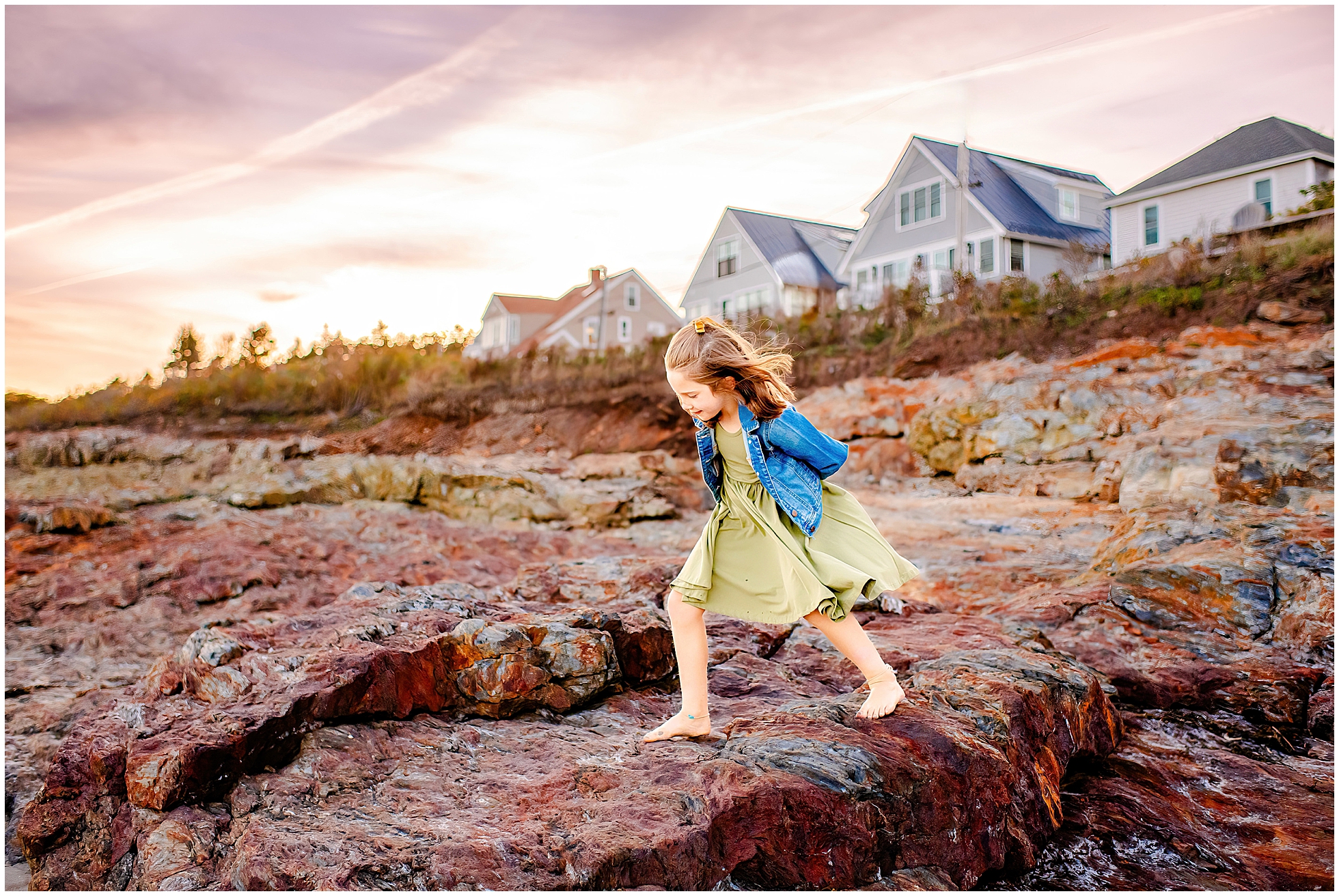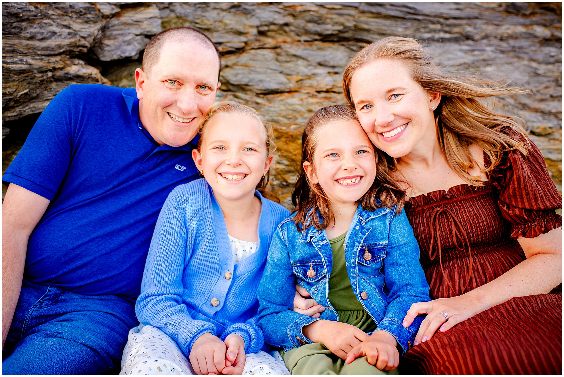 Happy Thanksgiving week, everyone! I’m finally getting to October sessions here on the blog and that means there is so much glowy fall goodness coming your way – but not before I share one final Higgins Beach session of the year! This year, the honor went to the M Family – Kelley, Matt, Amelia, and Bridget, and I could not have imagined a better way to wrap up Higgins sessions than with this crew. We had a stunning early October evening that went from bright and sunny to full on Higgins Magic, with cotton-candy skies making way to a glorious pink and orange sunset. Amelia and Bridget were a little timid for about 2.5 seconds, and then these two were off to the races – running circles around me and their parents, and full of all the giggles. It was so wonderful to see these four again, and I loved our early fall beach session with this beautiful and fun family. 💕