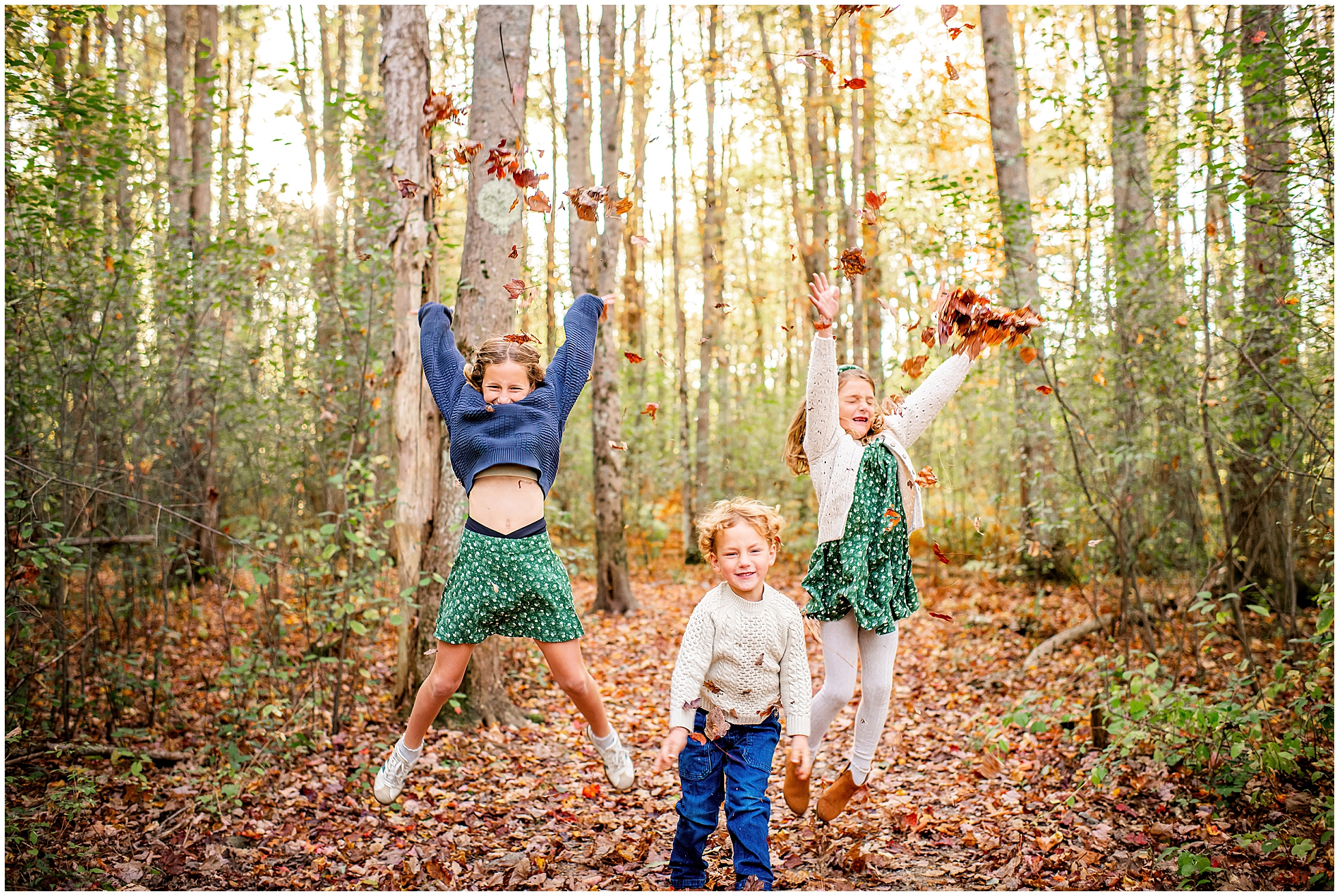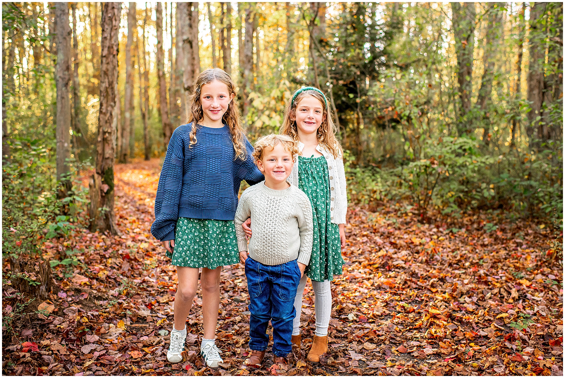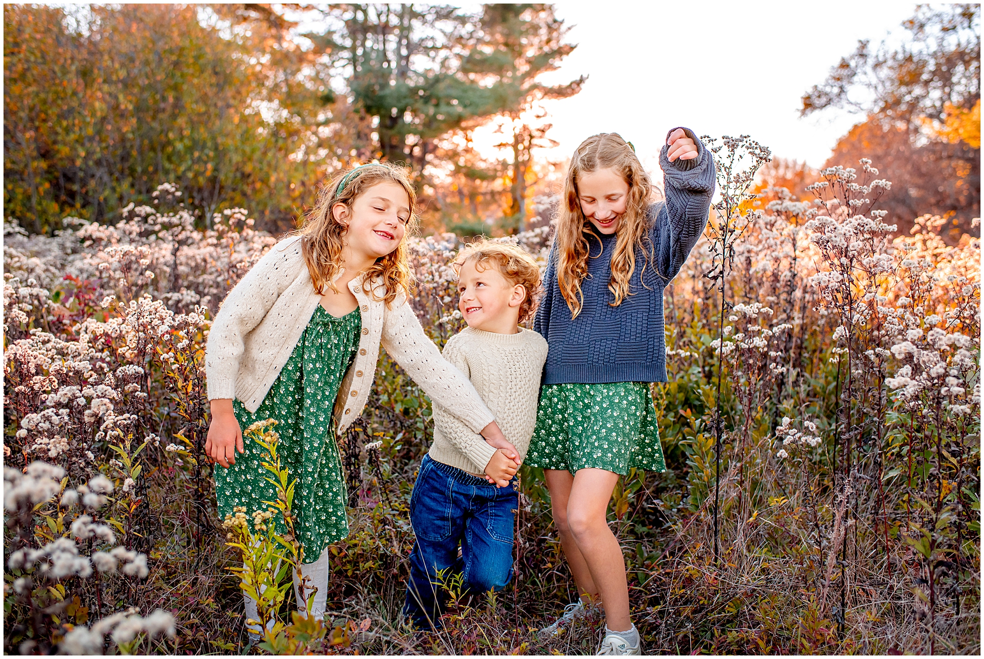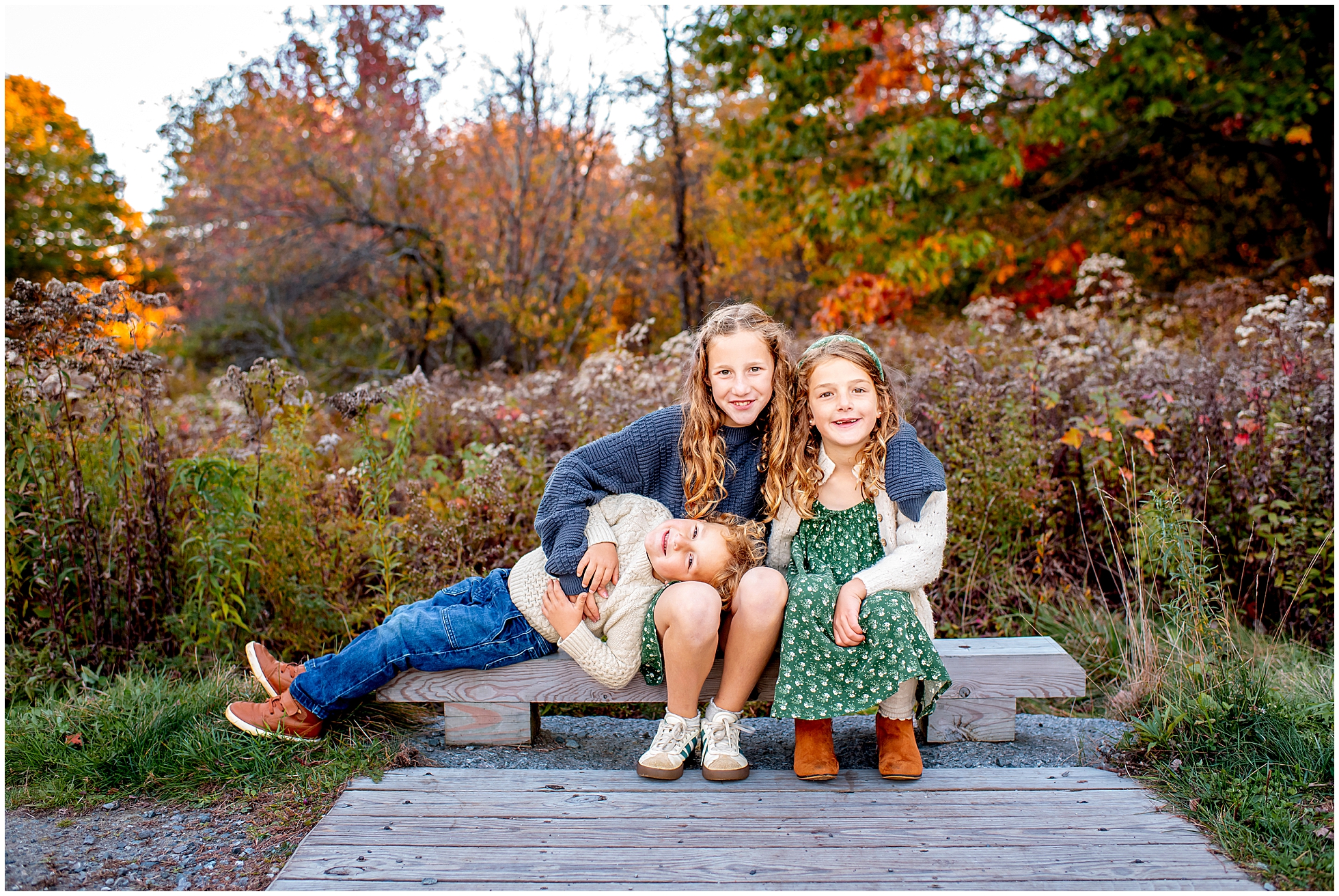 When I looked back today to see how long I have been working with the P Family, I had to do a double take. Because it seems crazy to me that I have only been working with this family for three years. In just that short time frame, Alyssa, Nick, Mila, Emme, and Jack have gone from new clients to ones that I feel like I have known forever. And the three very shy kiddos that were in front of my camera during our first session back in 2022, are now three very comfortable, silly, close-knit, and super adorable siblings who know that photo day is always a good time. I’ve had the honor of seeing them six times in the three years we’ve been working together, and every session gets better and better, with bigger laughs, and bigger smiles every time. I absolutely adore this adorable family and always treasure our time. This year we returned to Fels Grove here in Yarmouth for some golden October goodness, and updated memories with three kiddos who are growing too quickly, and one super-adorable family that always leaves me with a full heart. Here are my favorites!