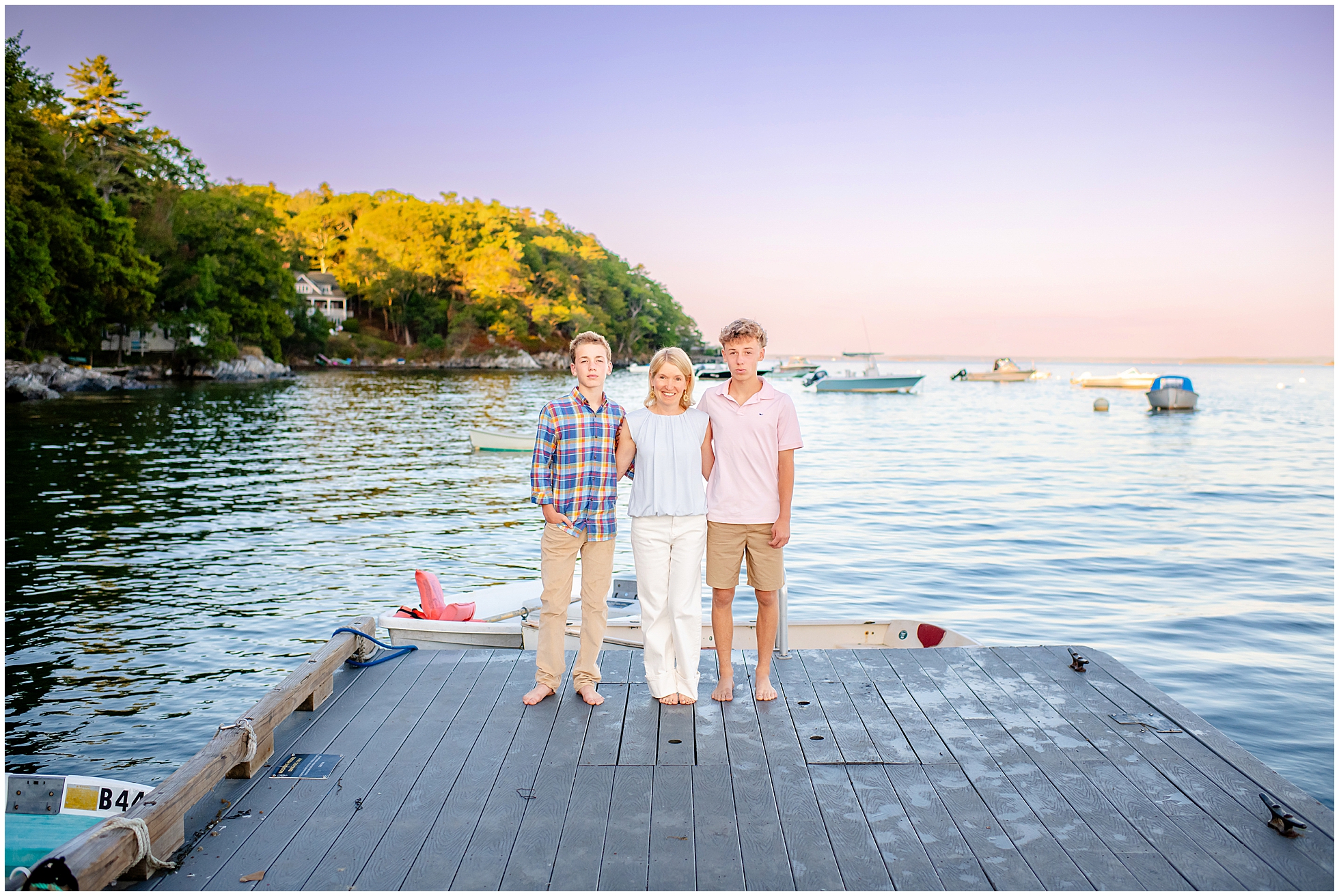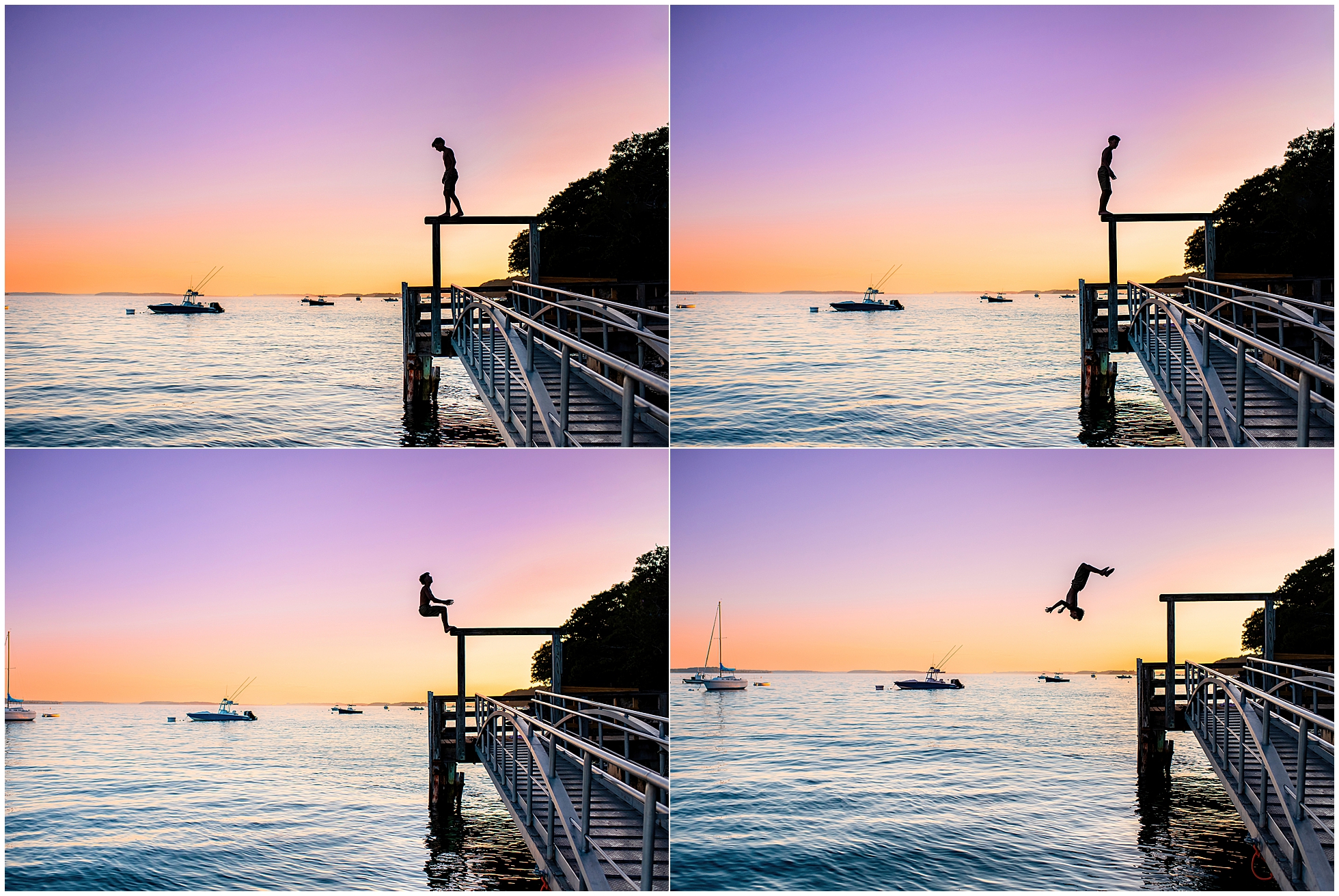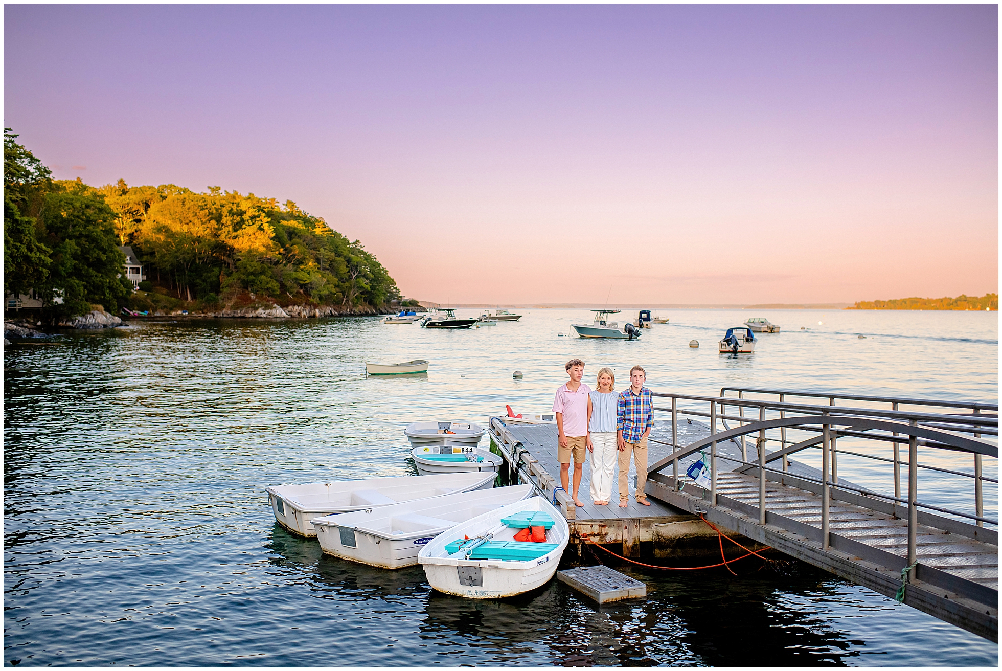 Six years ago, I met Rebecca, Mac and Alex, and every year since I’ve had the pleasure of seeing these three for our annual photo session. This year Rebecca wanted to start with photos at home, and then head to Littlejohn Island here in town, a favorite spot of the boys to go swimming and dock jumping in the summer. While I had driven past this spot on Littlejohn a few times over the years, I had never photographed there and was both excited and nervous, knowing how challenging the light can be along the coast here in Yarmouth. All my worries disappeared upon arrival though, as I realized that not only was the light absolute magic, but there was also magic in seeing two teenage boys, who don’t always love photo day, get a bit of a twinkle in their eye in their happy place. The highlight of the evening was our final frames, when Mac climbed to the very top (the VERY TOP) of the dock and did a magical flip into the ocean below. You’re definitely going to want to scroll all the way to the end of this one. ✨ This was one for the books, and I’m always grateful for another year with these three in front of my cameras.