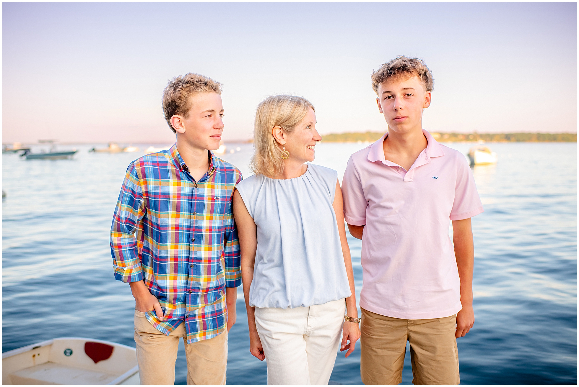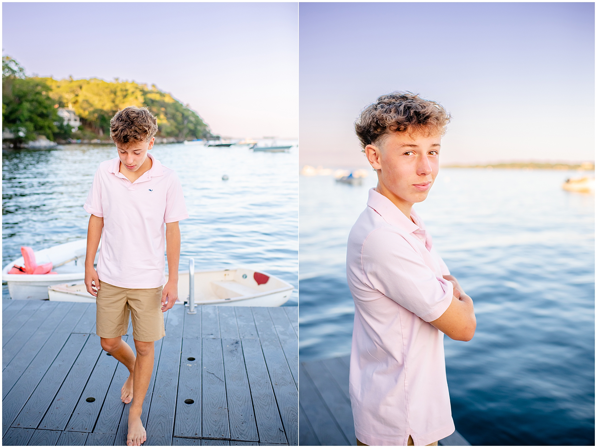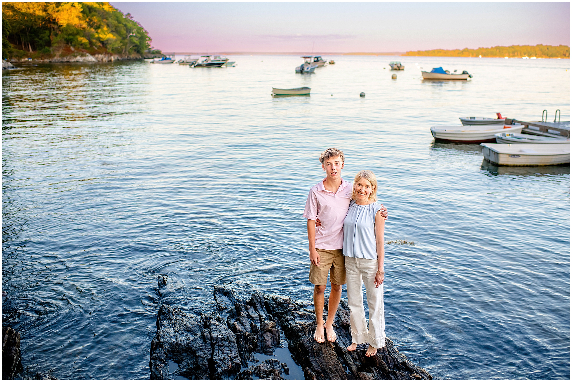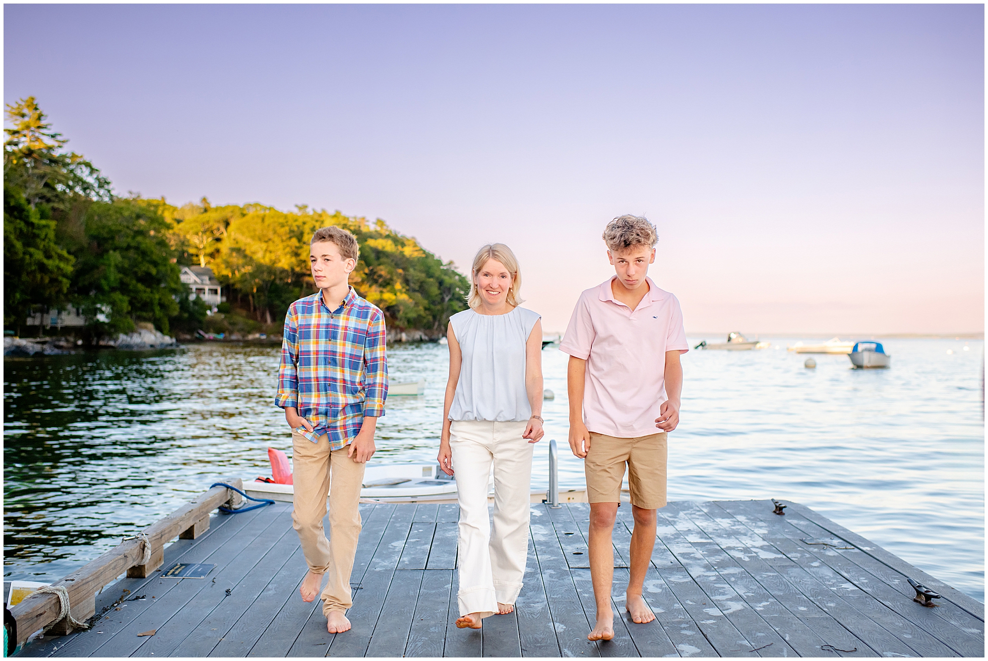 Six years ago, I met Rebecca, Mac and Alex, and every year since I’ve had the pleasure of seeing these three for our annual photo session. This year Rebecca wanted to start with photos at home, and then head to Littlejohn Island here in town, a favorite spot of the boys to go swimming and dock jumping in the summer. While I had driven past this spot on Littlejohn a few times over the years, I had never photographed there and was both excited and nervous, knowing how challenging the light can be along the coast here in Yarmouth. All my worries disappeared upon arrival though, as I realized that not only was the light absolute magic, but there was also magic in seeing two teenage boys, who don’t always love photo day, get a bit of a twinkle in their eye in their happy place. The highlight of the evening was our final frames, when Mac climbed to the very top (the VERY TOP) of the dock and did a magical flip into the ocean below. You’re definitely going to want to scroll all the way to the end of this one. ✨ This was one for the books, and I’m always grateful for another year with these three in front of my cameras.