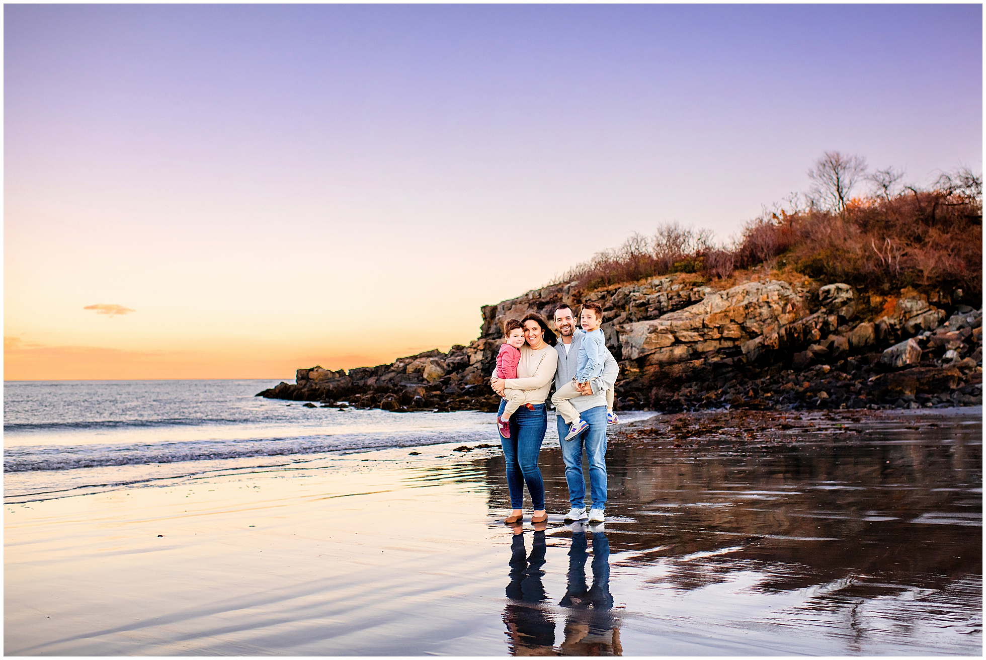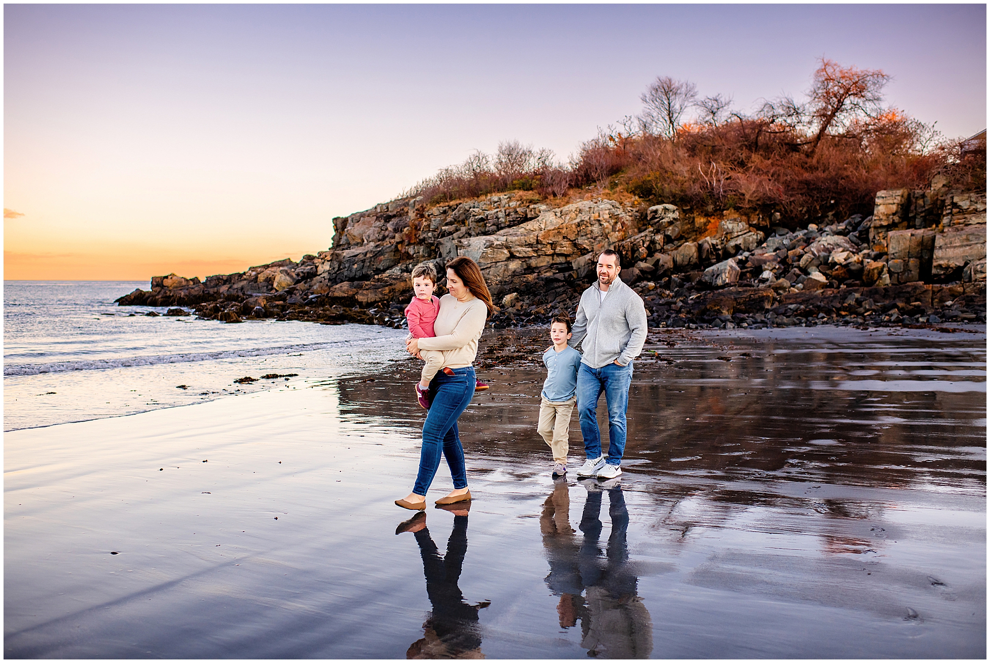 We are in the homestretch of 2025 sessions! I had five sessions in November, and the second was the V Family – a family I have had the extreme pleasure of working with since the very early days, when I took Ryan and Valerie’s engagement photos way back in 2013. Every fall I get to spend an afternoon with Ryan, Valerie, Jack, and Ben somewhere in southern Maine or coastal New Hampshire, and every year I know I’m going to spend most of the time laughing at the antics of two very cute and very silly boys who always start off a little shy but come out of their shells very quickly during our sessions. This year we met up in York, starting at the Hartley Mason Reservation and working our way down to York Harbor Beach. It was a very very bright November afternoon, making for some sun-kissed silly photos at the beginning of the session and some really beautiful sunset images on the beach (loooooove November beach! 🙌🏻). As always, all four of these guys made me laugh out loud with their hilarious personalities and love for each other. It is always a treat to spend time with this crew and this year was no exception. Here are my favorites!